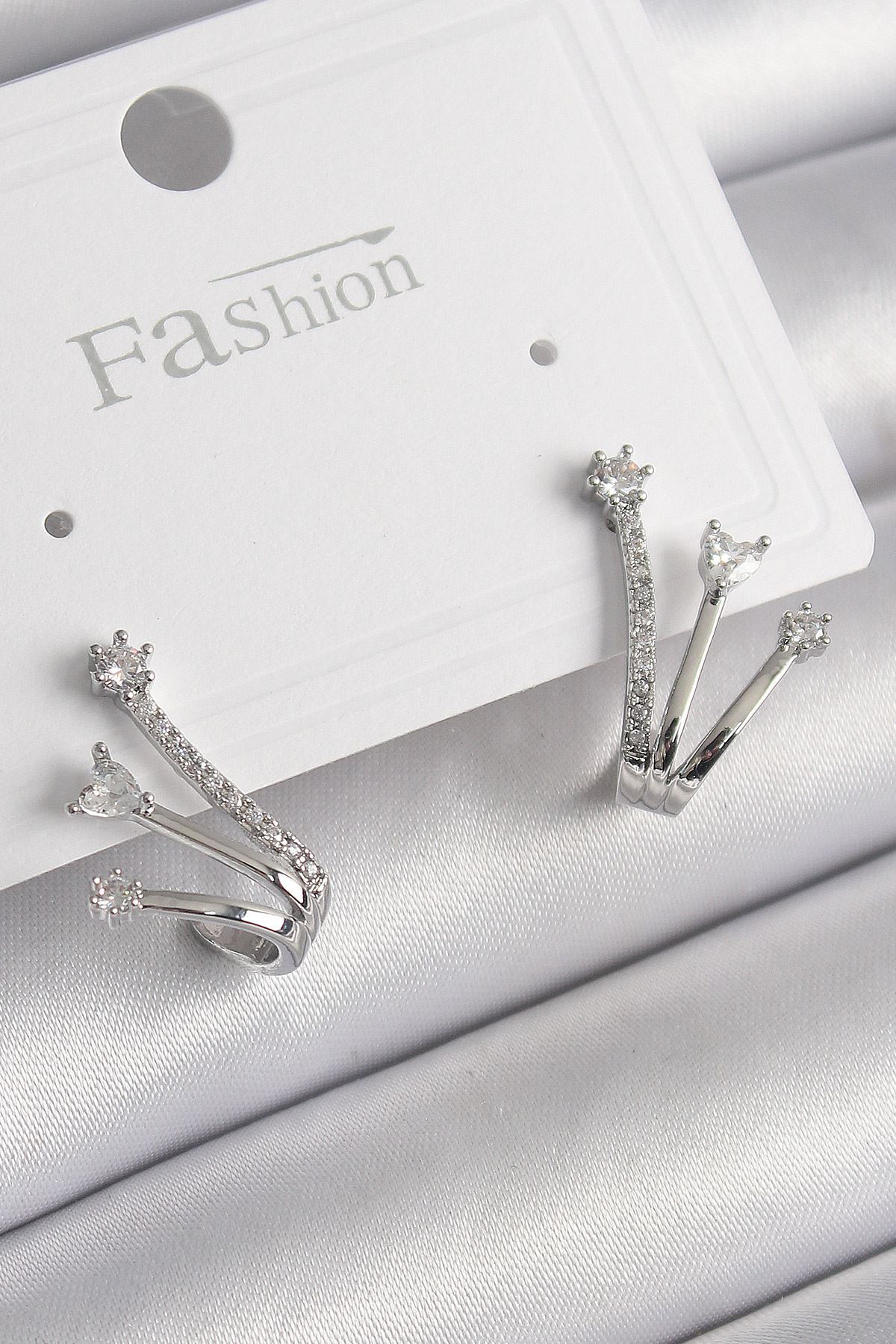 Pirinç Gümüş Renk Zirkon Taşlı X Model Sallantı Detay Kadın Küpe - TJ-BKP9873