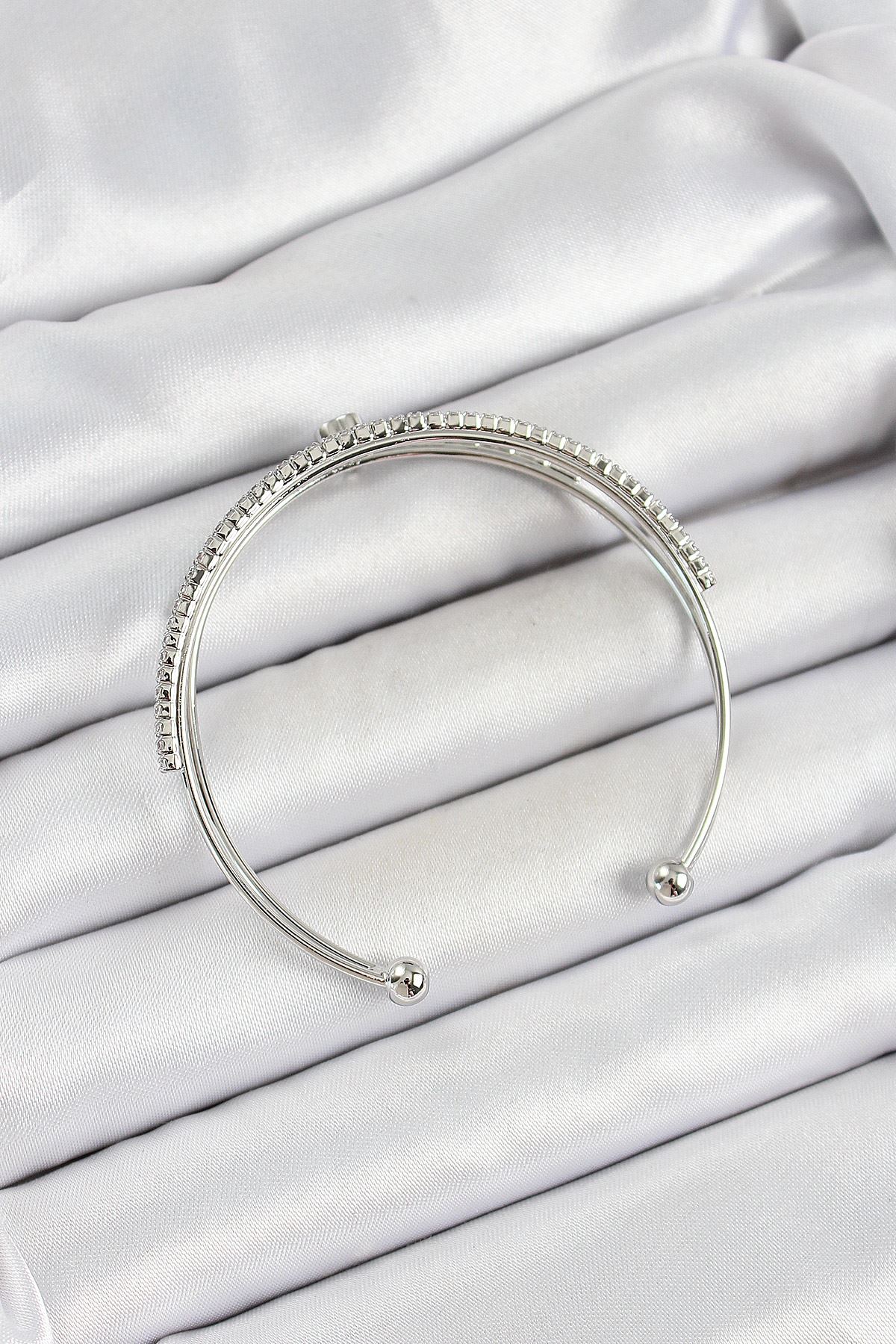 Pirinç Gümüş Renk Zirkon Taşlı Kalp Detaylı Kadın Bileklik - TJ-BB7062