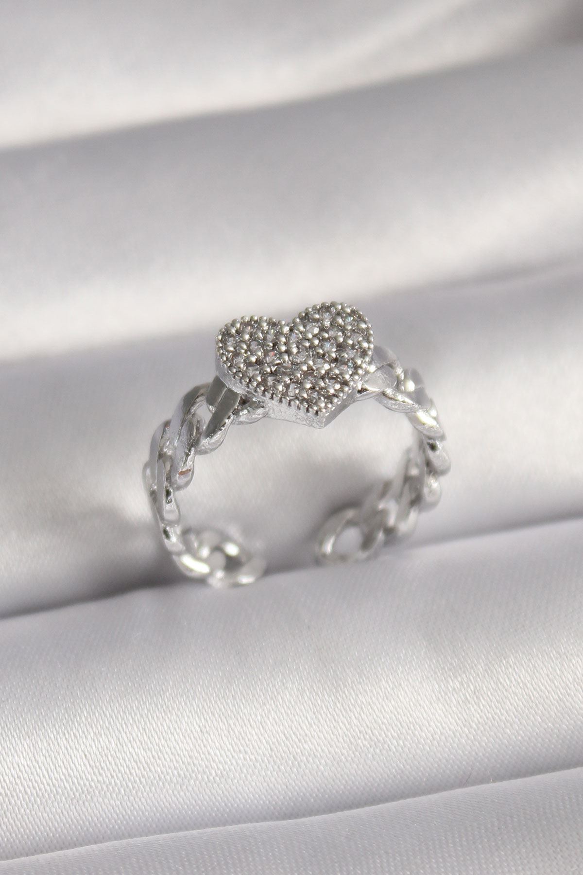 Pirinç Gümüş Renk Zirkon Taşlı Kalp Model Kadın Yüzük - TJ-BYK3093