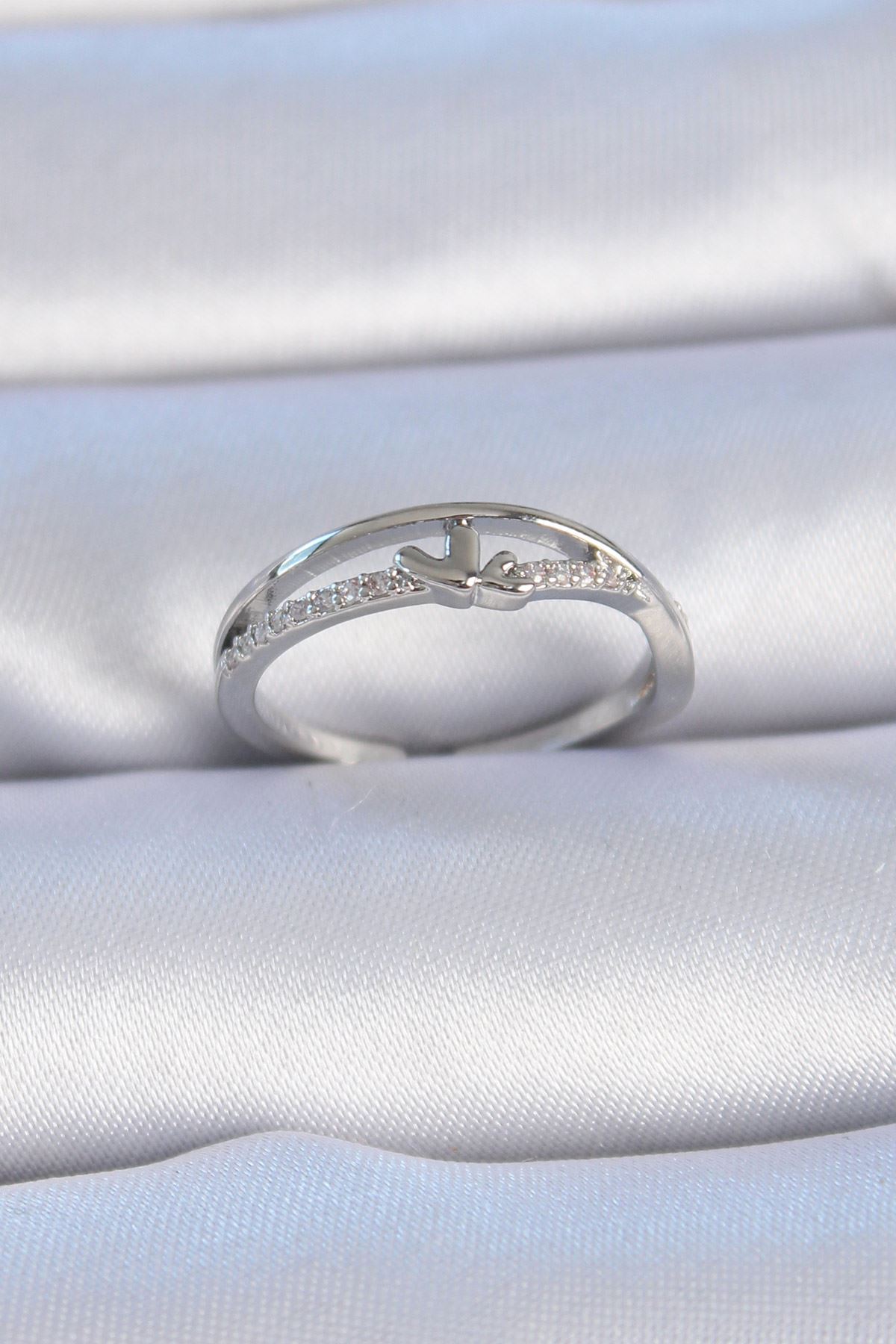 Pirinç Gümüş Renk Zirkon Taşlı Kalp Model Kadın Yüzük - TJ-BYK3303