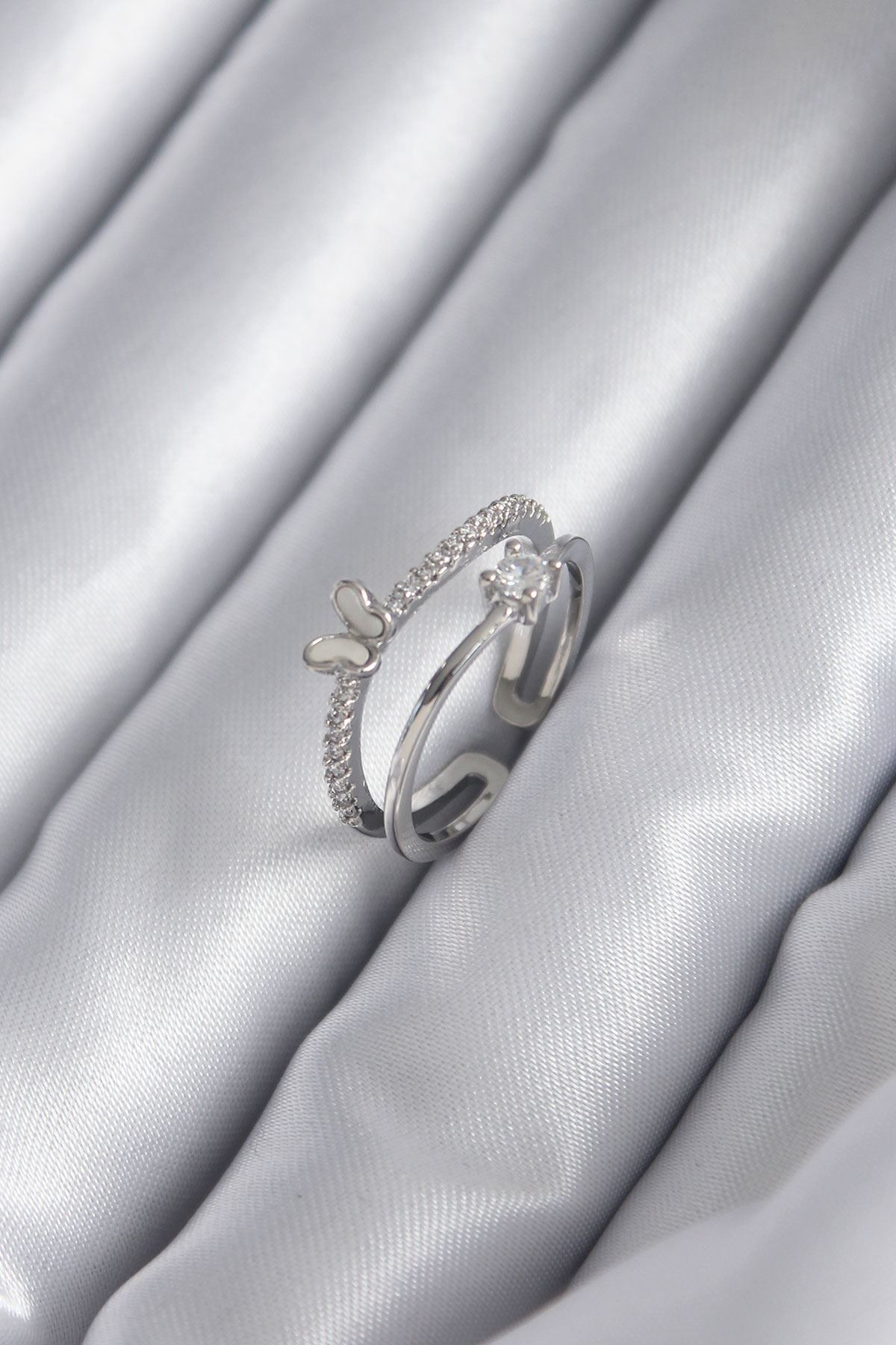 Pirinç Gümüş Renk Zirkon Taşlı Kelebek Model Kadın Yüzük - TJ-BYK2932
