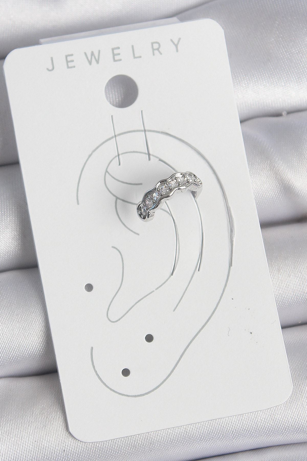 Pirinç Gümüş Renk Zirkon Taşlı Kıkırdak Model Kadın Küpe - TJ-BKP10550