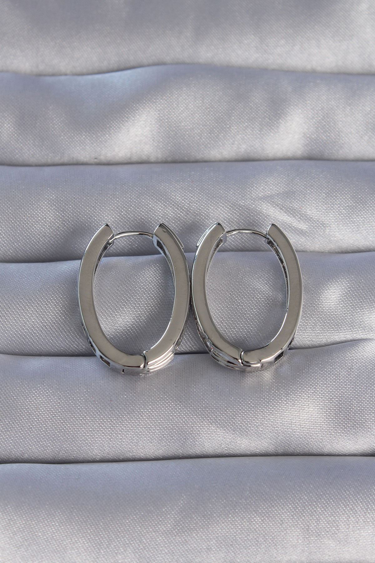 Pirinç Gümüş Renk Zirkon Taşlı Oval Model Küpe - TJ-BKP9078