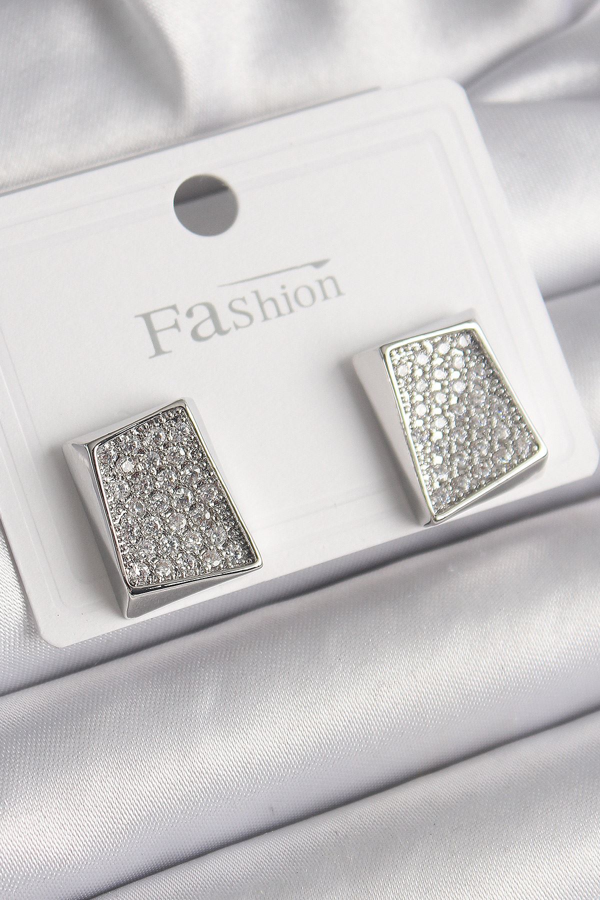 Pirinç Gümüş Renk Zirkon Taşlı Plaka Model Kadın Küpe - TJ-BKP9849