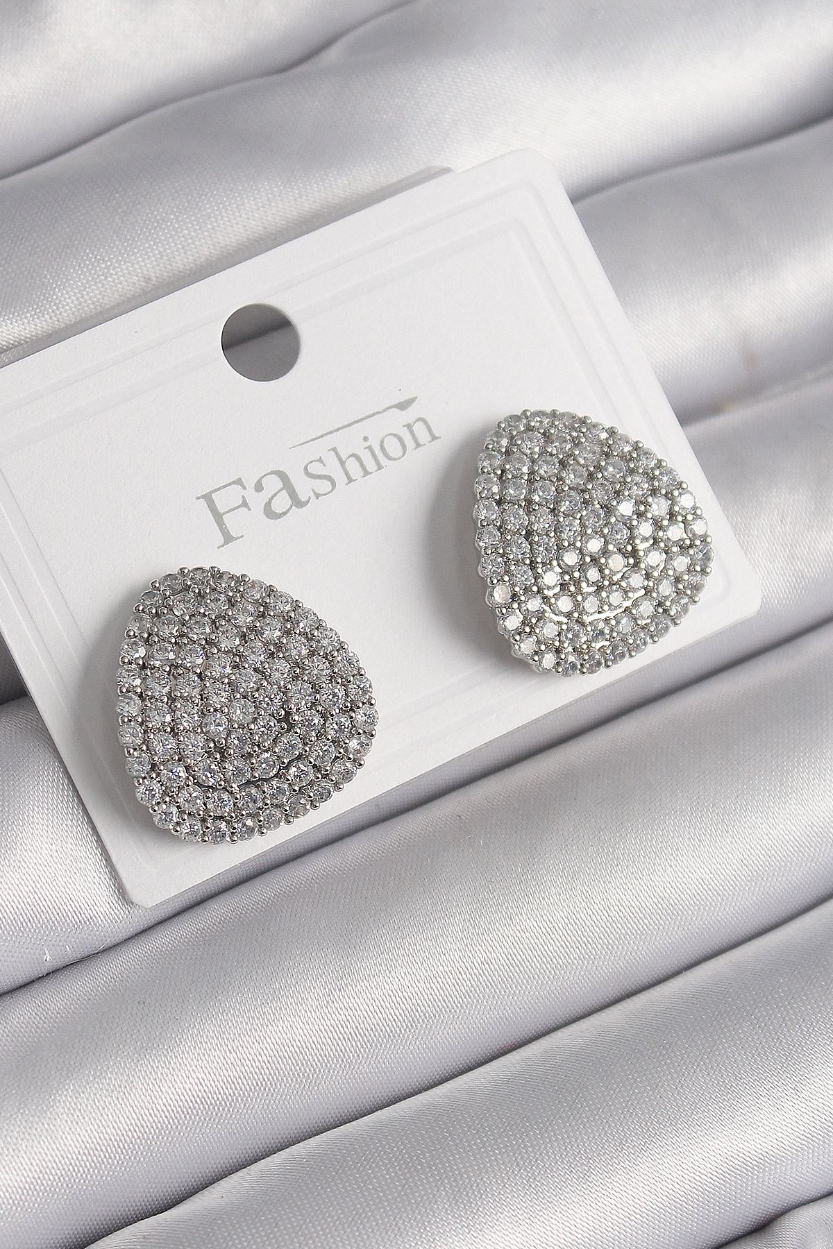 Pirinç Gümüş Renk Zirkon Taşlı Plaka Model Kadın Küpe - TJ-BKP9980