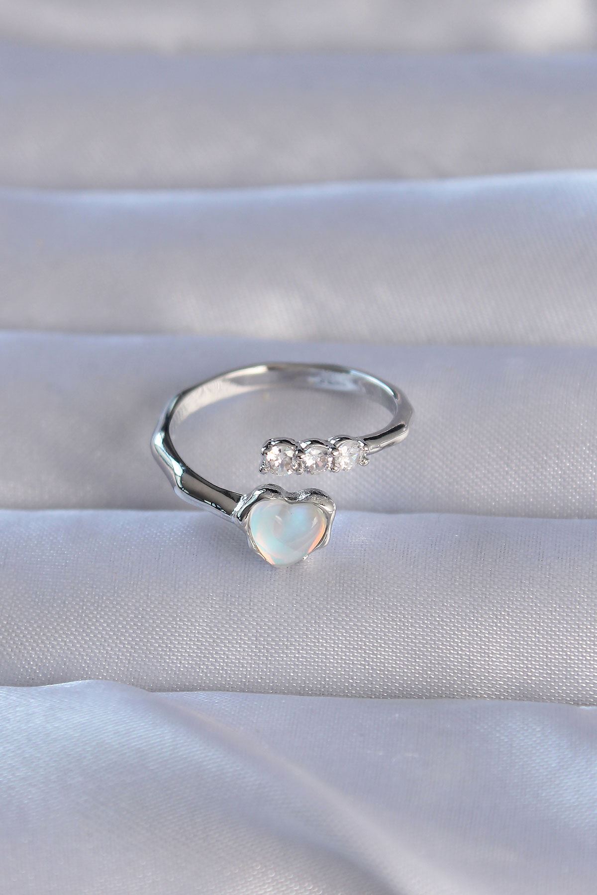 Pirinç Gümüş Renk Zirkon Taşlı Sedefli Kalp Model Ayarlanabilir Yüzük - TJ-BYK3232