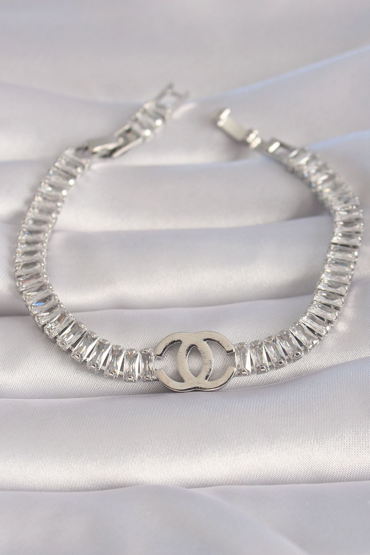 Pirinç Gümüş Renk Zirkon Taşlı Su Yolu Model VIP Seri Kadın Bileklik - TJ-BB5984