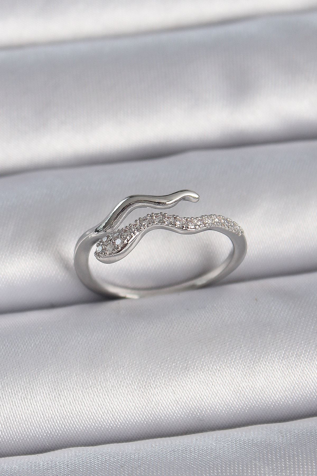 Pirinç Gümüş Renk Zirkon Taşlı Yılan Ayarlanabilir Model Kadın Yüzük - TJ-BYK3369