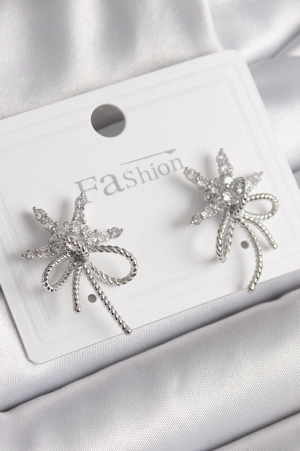 Pirinç Gümüş Renk Zirkon Taşlı Yıldız Düğüm Model Kadın Küpe - TJ-BKP9952