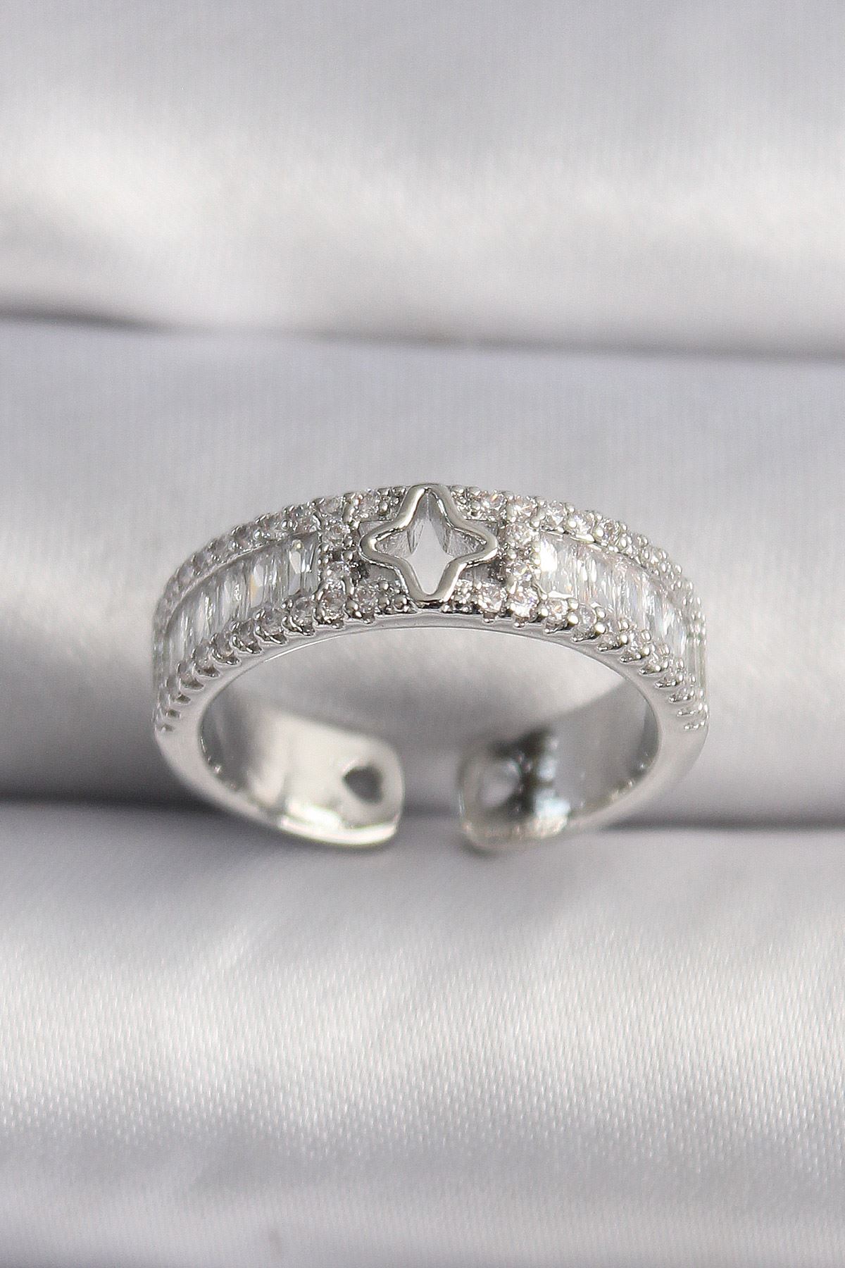 Pirinç Gümüş Renk Zirkon Taşlı Yıldız İşleme VIP Seri Kadın Yüzük - TJ-BYK3509