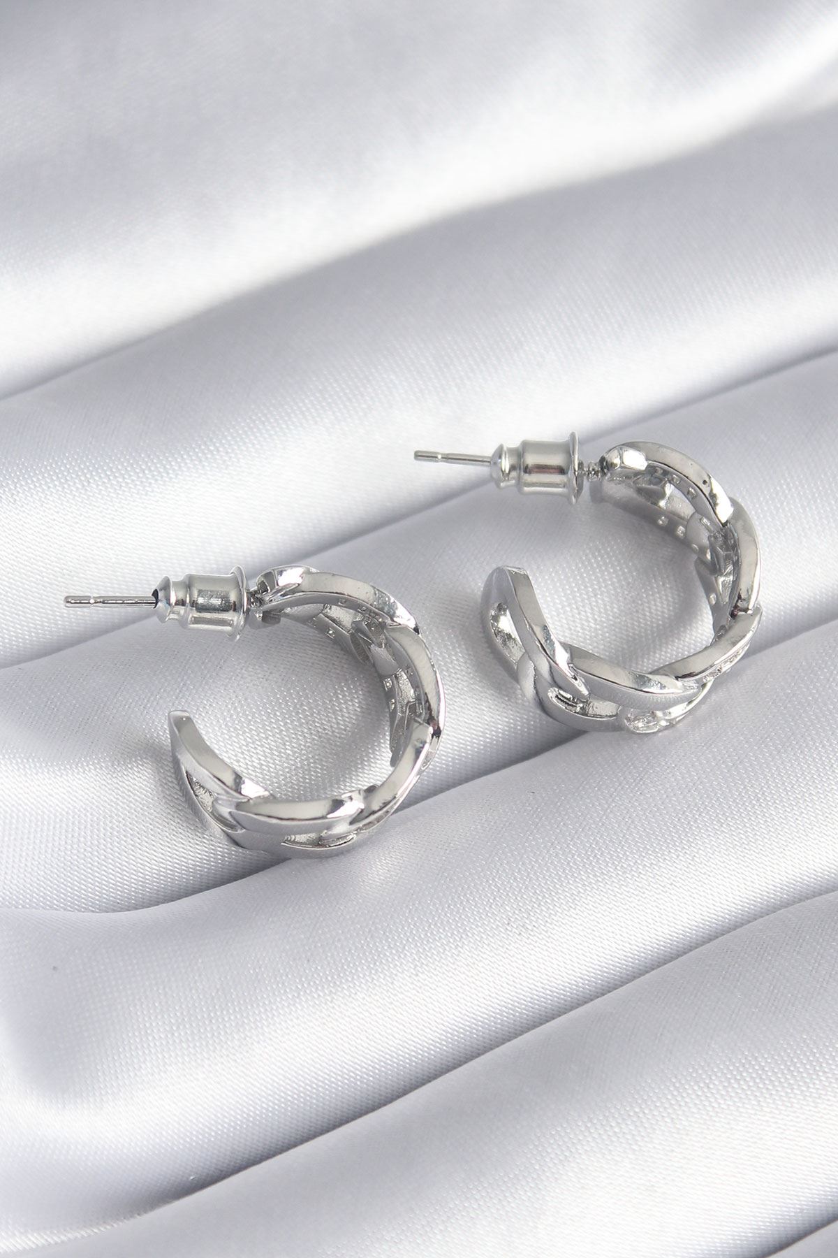 Pirinç Gümüş Renk Zirkon Taşlı Kurdele Model Kadın Küp - TJ-BKP8600