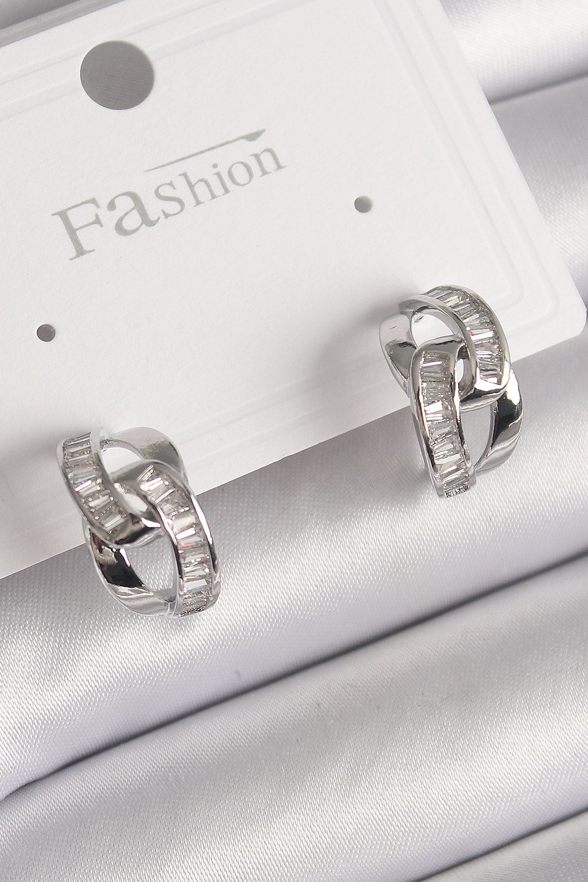 Pirinç Gümüş Renk Zirkon Taşlı Zincir Model Kadın Küpe - TJ-BKP9793