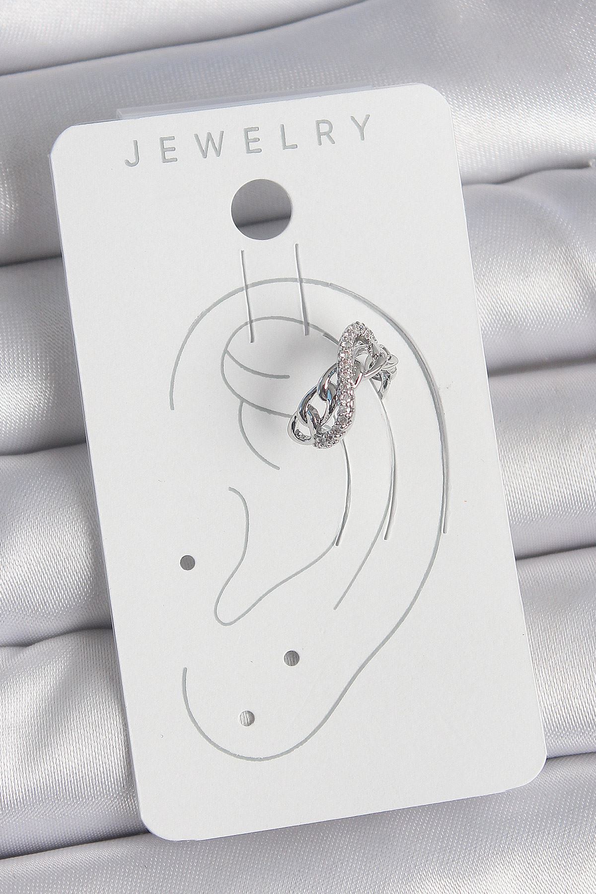 Pirinç Gümüş Renk Zirkon Taşlı Zincir Sonsuzluk Model Kadın Kıkırdak Küpe - TJ-BKP10553