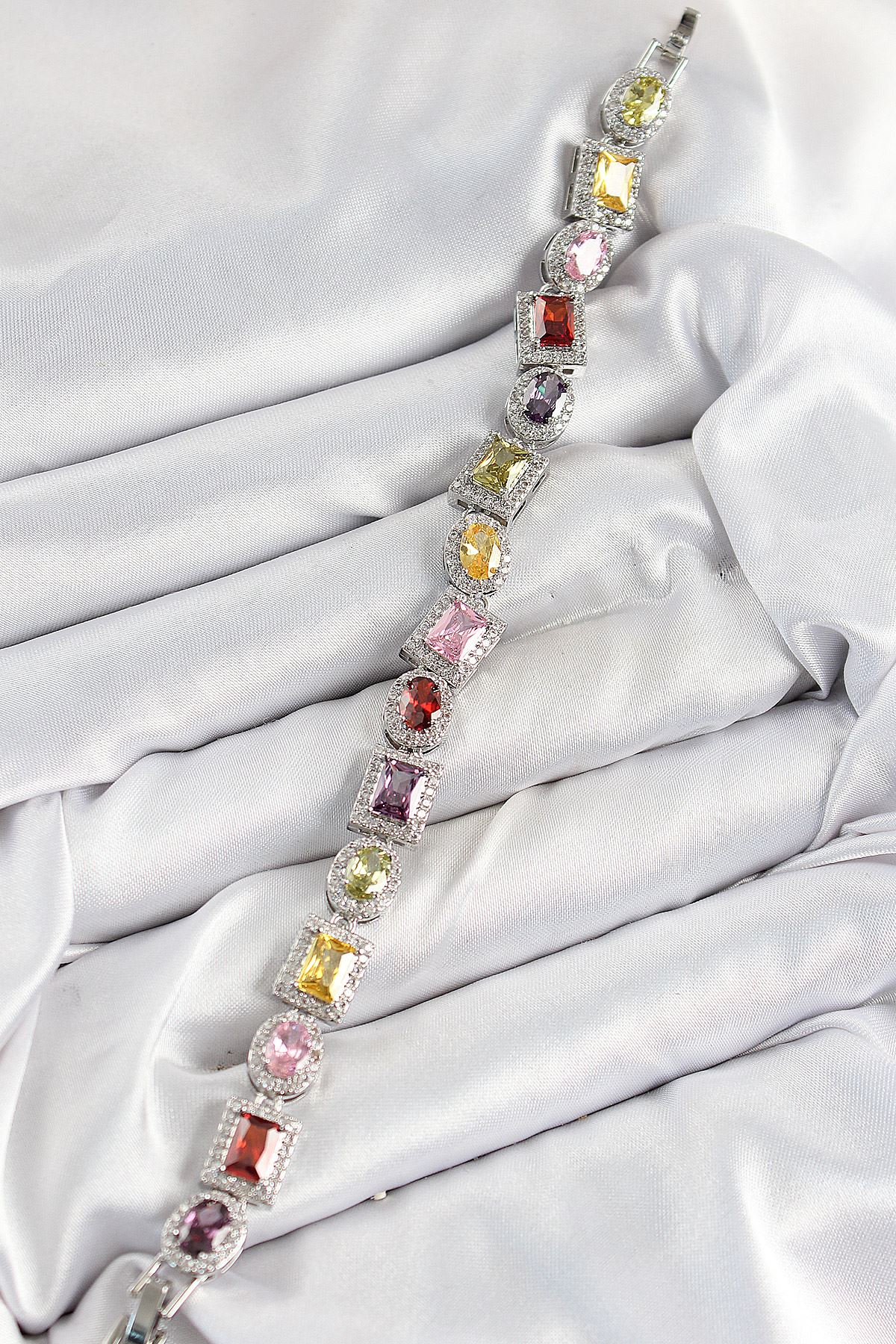 Pirinç Karışık Zirkon Taşlı Baget Model Gümüş Renk VIP Seri Kadın Bileklik - TJ-BB7503
