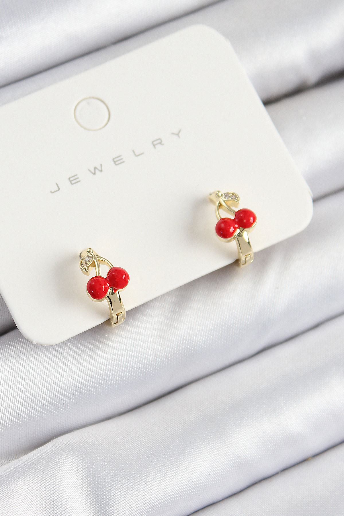 Pirinç Kiraz Model Gold Renk Çocuk Küpe - TJ-BKP10910