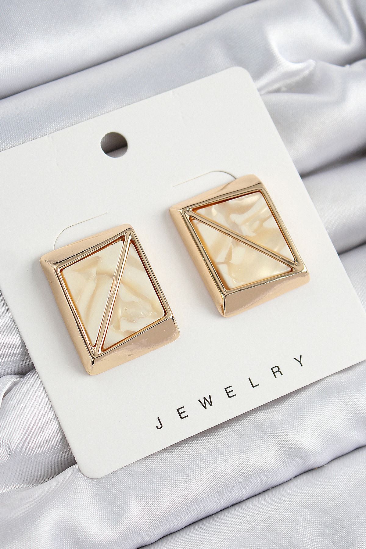 Pirinç Krem Üçgen Kesim Detaylı Kare Model Vintage Gold Renk Kadın Küpe - TJ-BKP10875