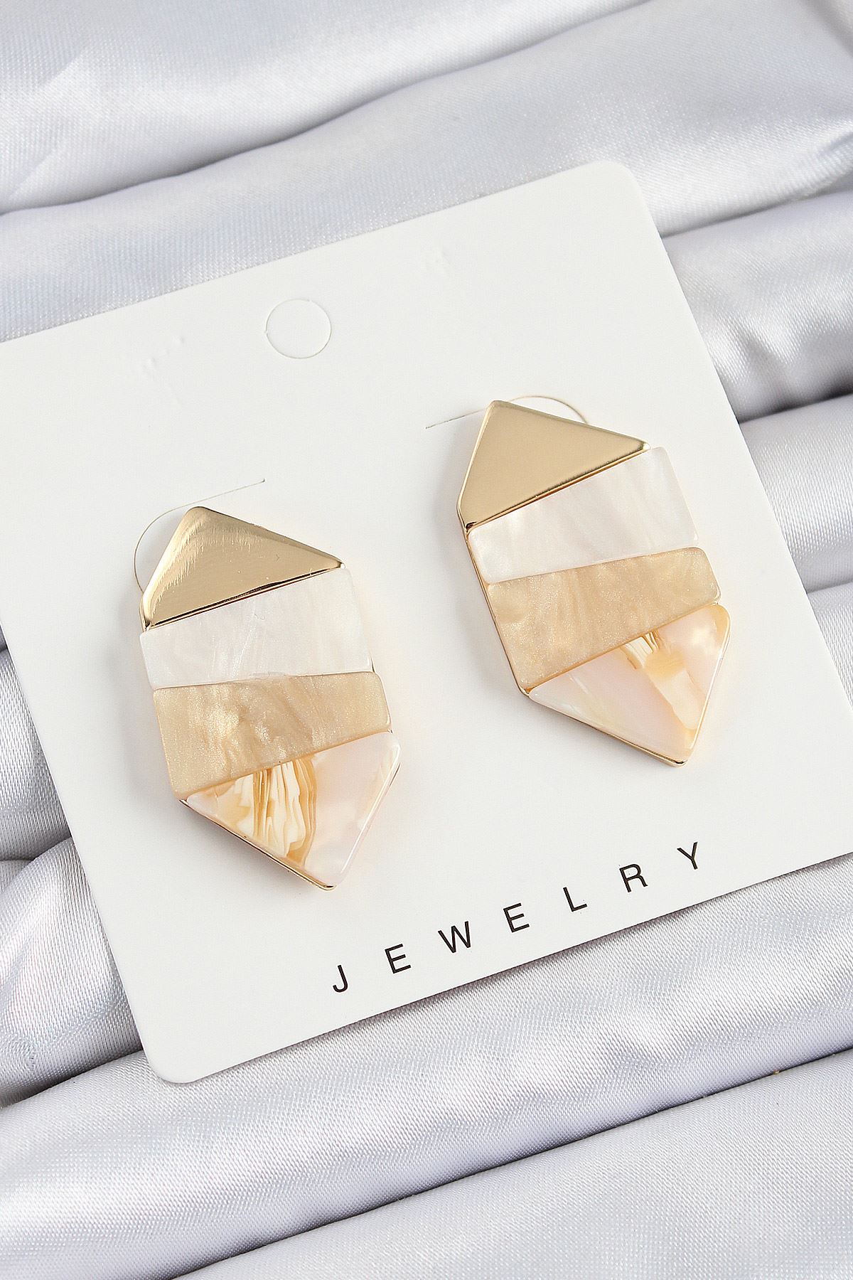 Pirinç Mermer Desenli Vintage Geometrik Model Gold Renk Kadın Küpe - TJ-BKP10767