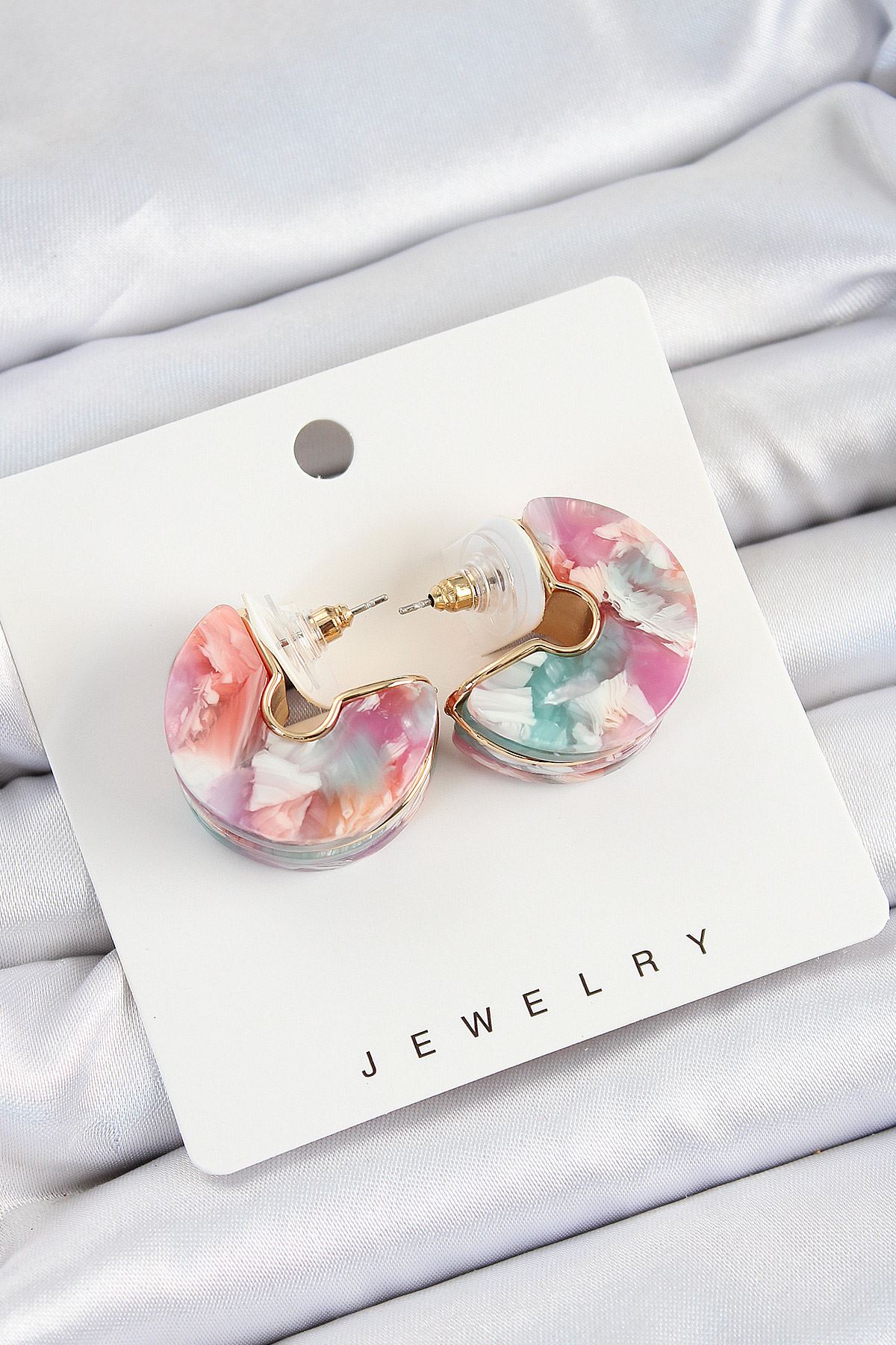 Pirinç Mermer Desenli Vintage Yarım Halka Model Gold Renk Kadın Küpe - TJ-BKP10763