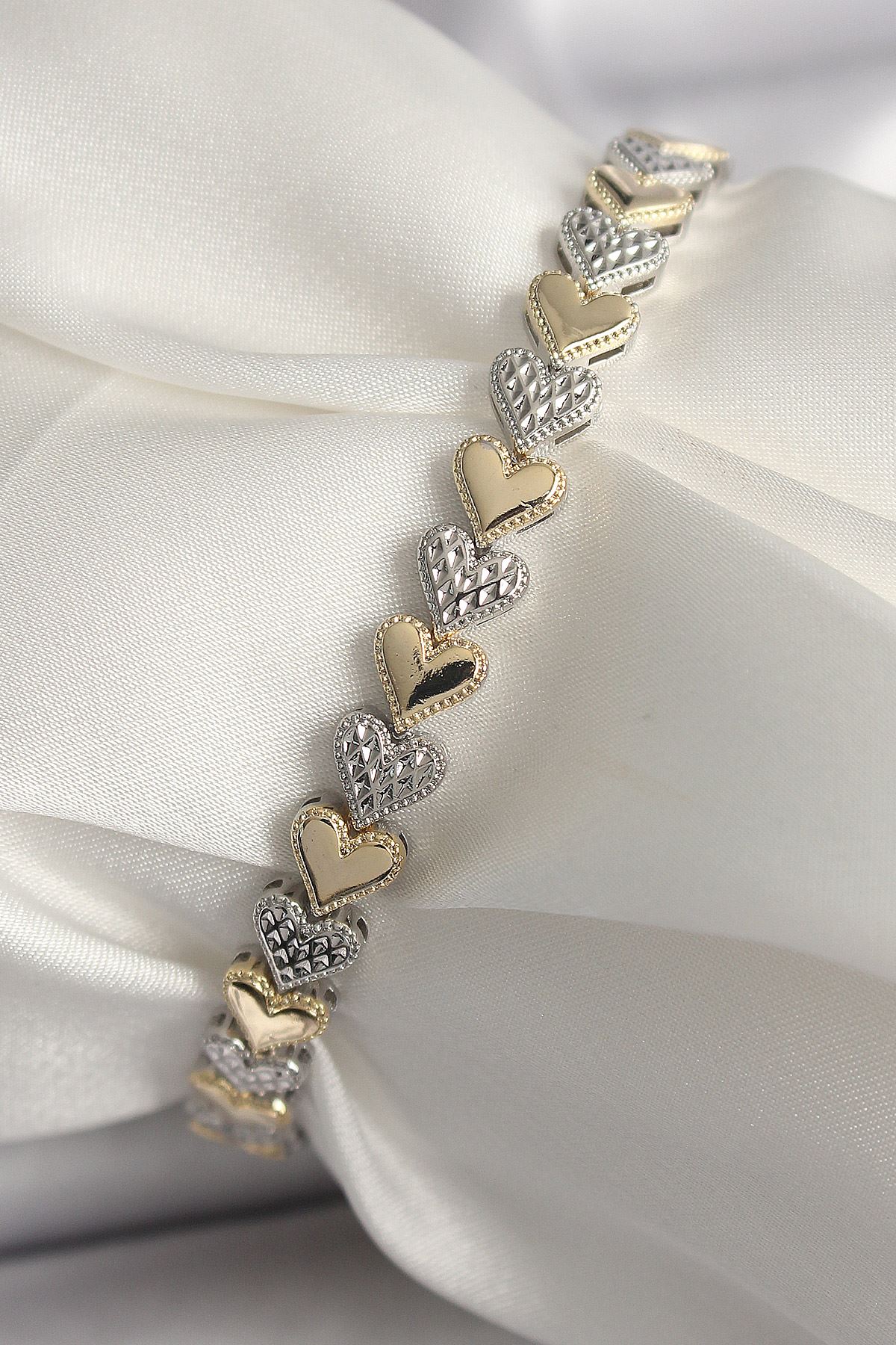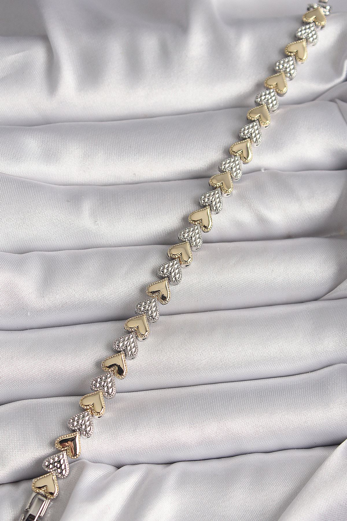 Pirinç Mix Renk Zirkon Taşlı Kalp Model VIP Seri Kadın Bileklik - TJ-BB6722