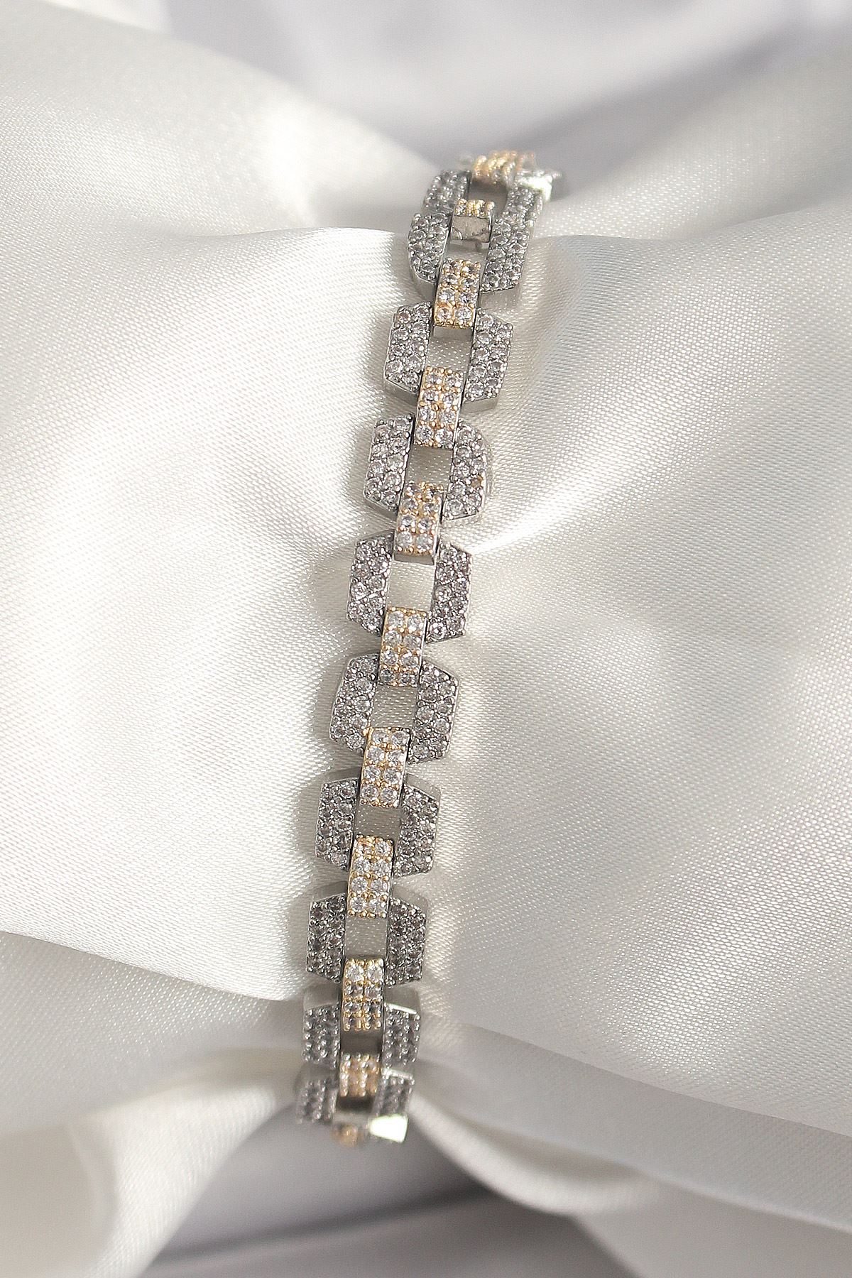 Pirinç Mix Renk Zirkon Taşlı Zincir Model VIP Seri Kadın Bileklik - TJ-BB6811