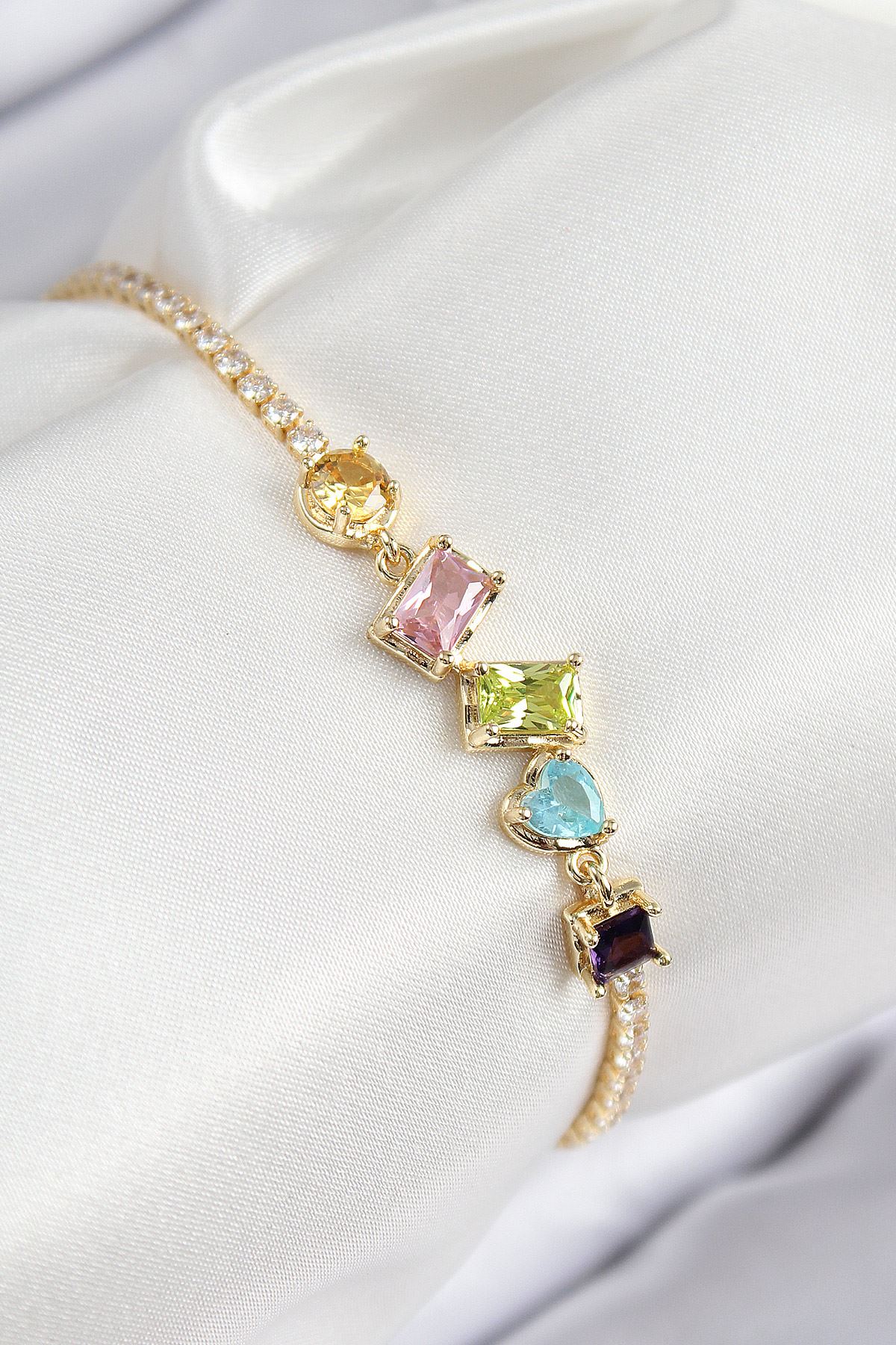 Pirinç Renkli Zirkon Taşlı Geometrik Model Gold Renk Kadın Bileklik - TJ-BB7689