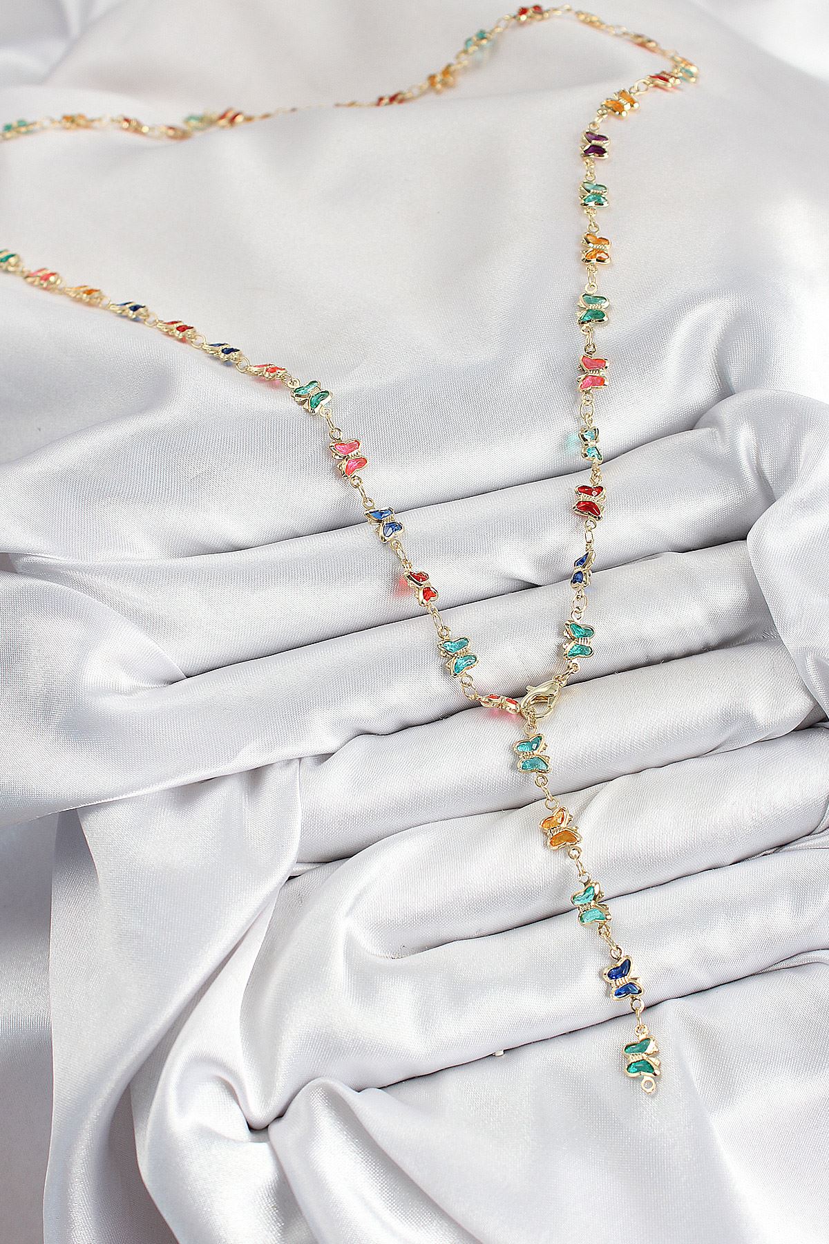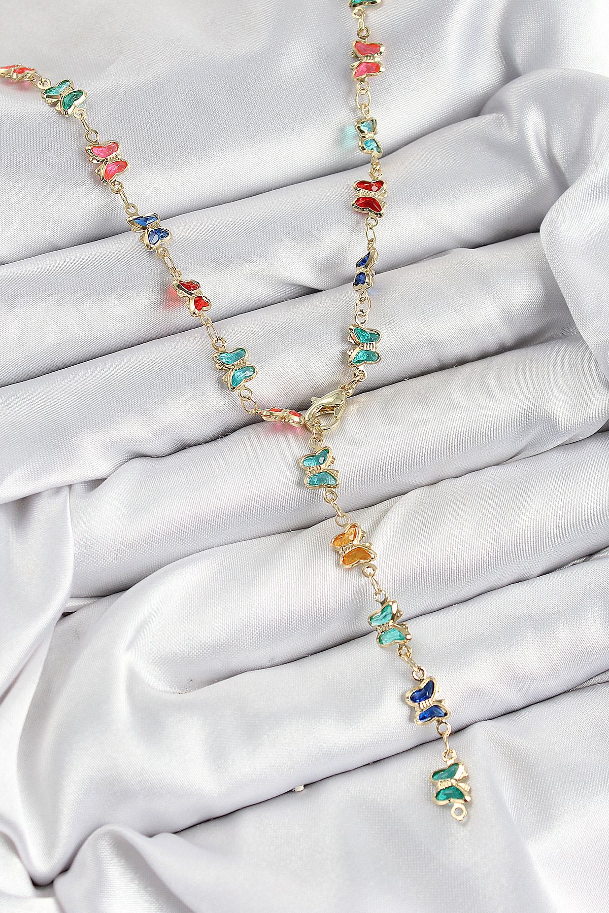 Pirinç Renkli Zirkon Taşlı Kelebek Model Gold Renk Kadın Y Kolye - TJ-BKO10386