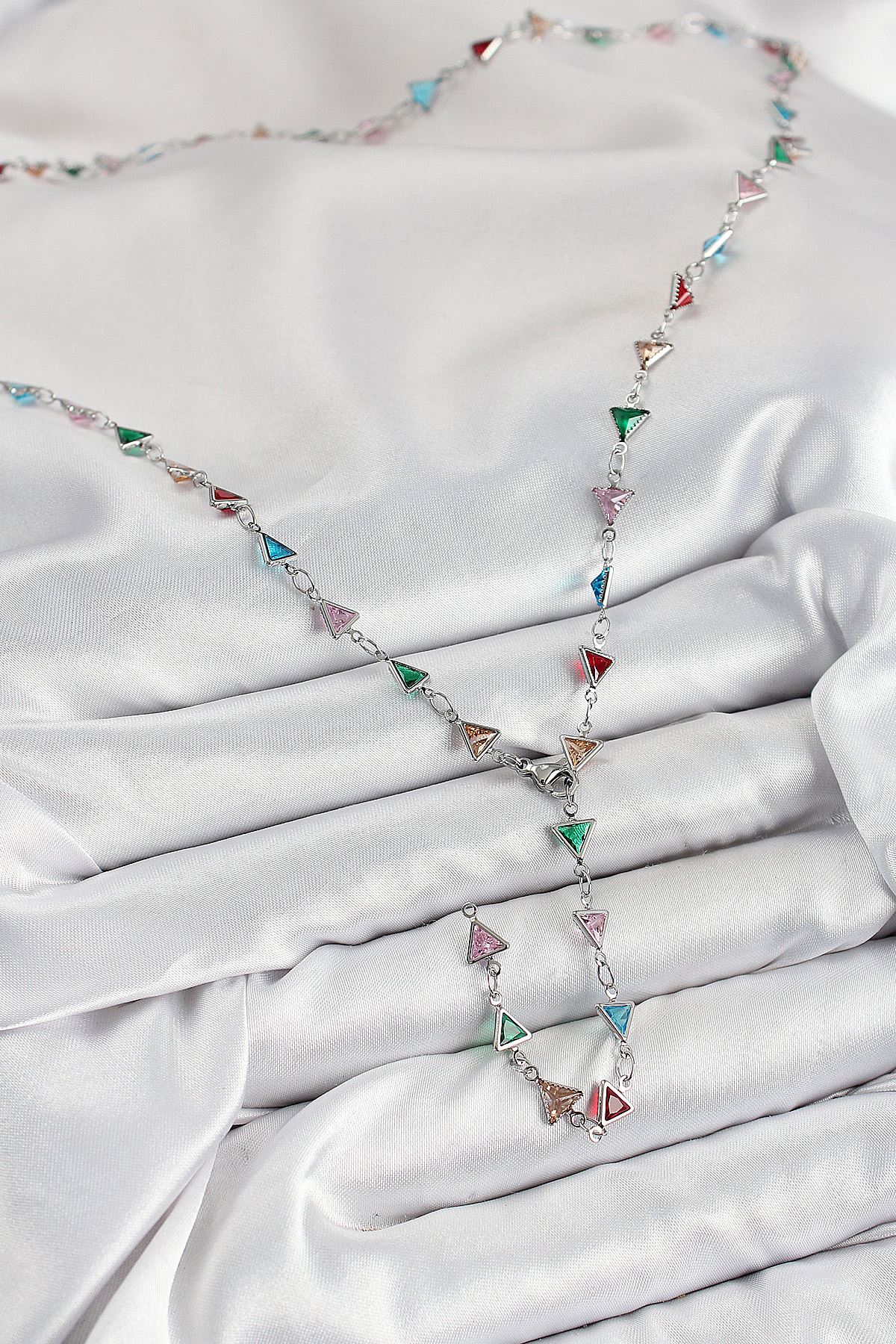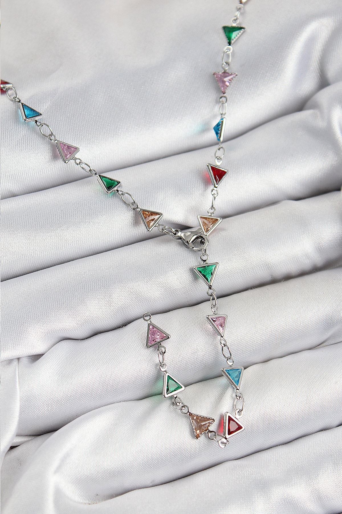 Pirinç Renkli Zirkon Taşlı Üçgen Model Gümüş Renk Kadın Y Kolye - TJ-BKO10383