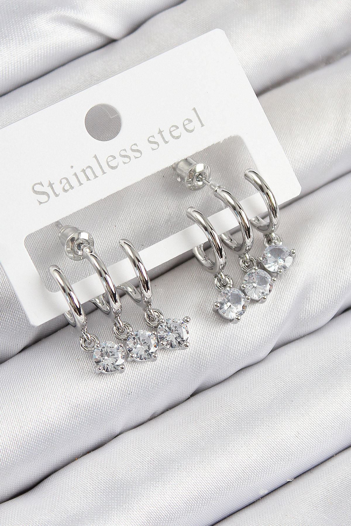 Pirinç Sallantılı Zirkon Taşlı Model Gümüş Renk Kadın Küpe - TJ-BKP11098