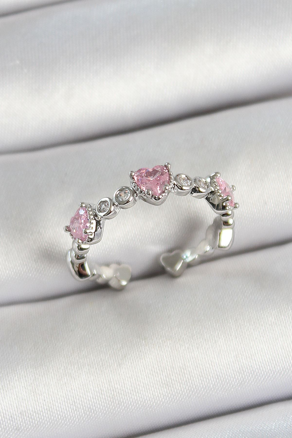 Pirinç Sıralı Kalp Figürlü Zirkon Taşlı Gümüş Renk Ayarlanabilir Kadın Yüzük - TJ-BYK3757