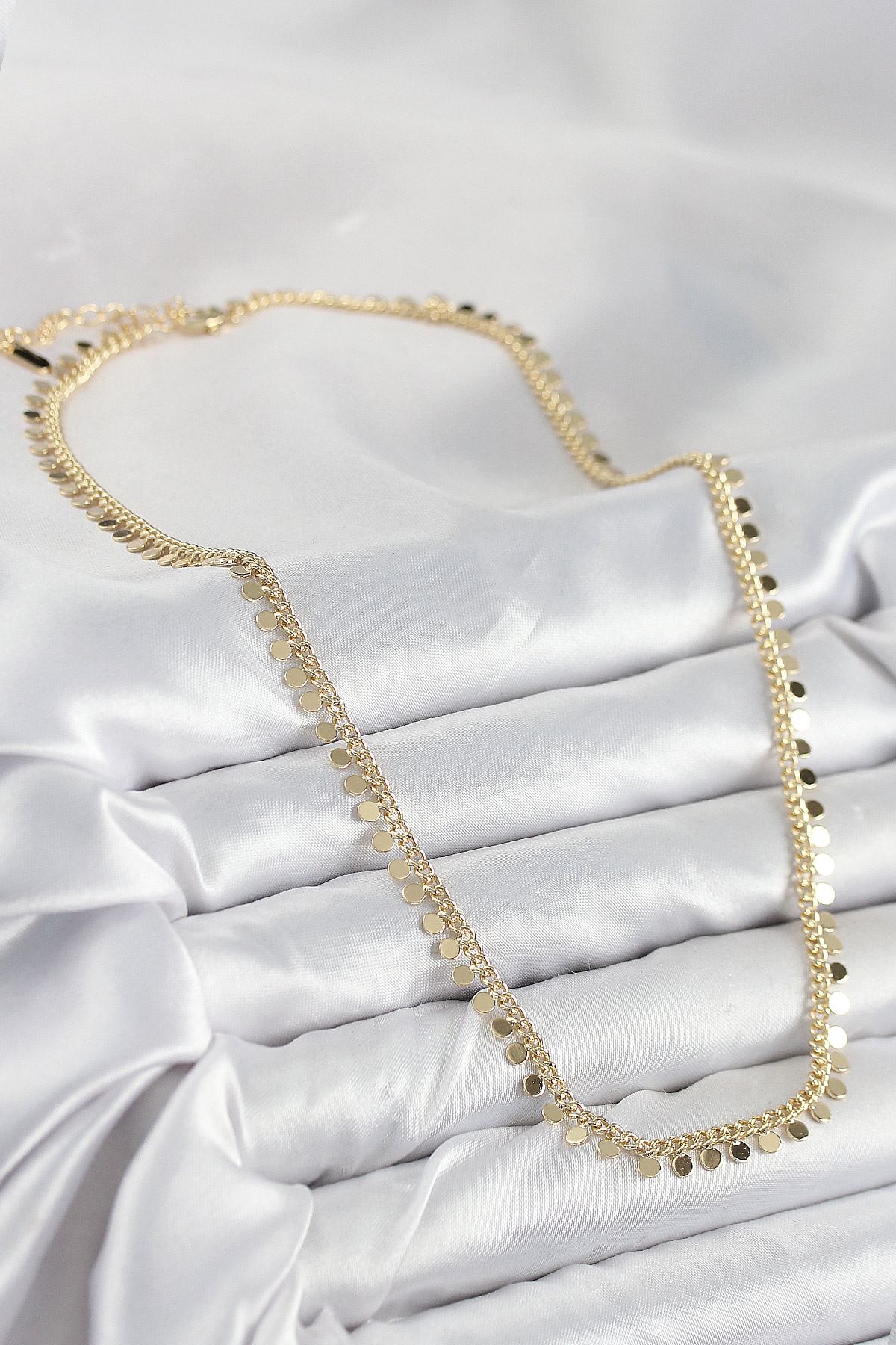 Pirinç Sıralı Pul Zincir Model Gold Renk Kadın Kolye - TJ-BKO10489