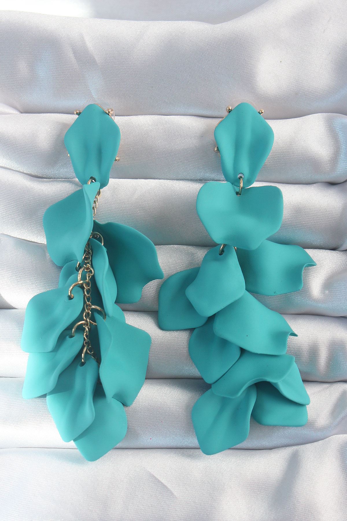 Pirinç Turkuaz Renk Sallantılı Yaprak Model Küpe - TJ-BKP9183