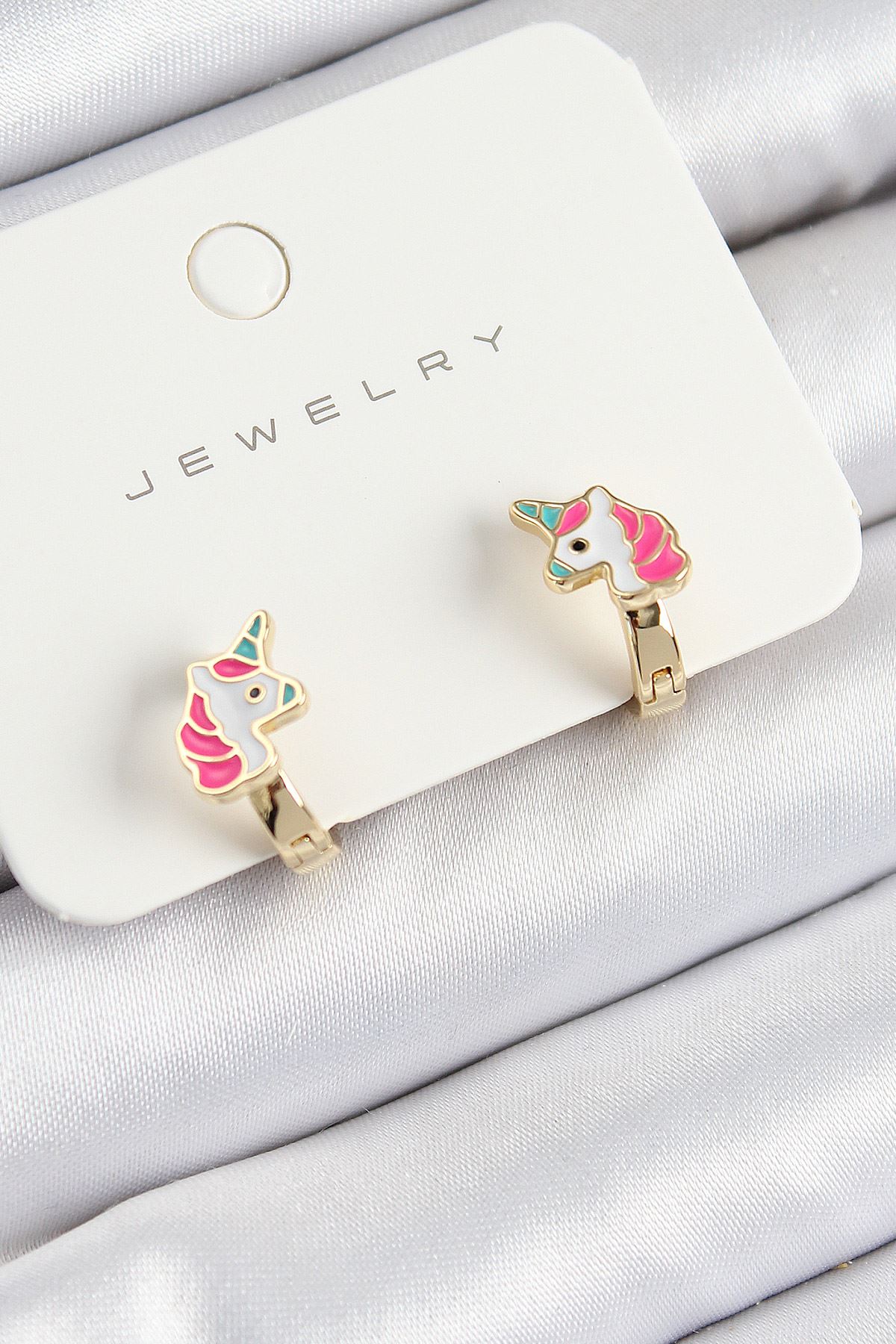 Pirinç Unıcorn Model Gold Renk Çocuk Küpe - TJ-BKP10905