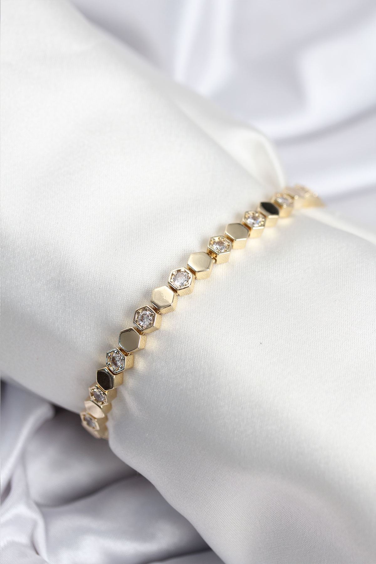 Pirinç VIP Seri Gold Renk Petek Model Kadın Bileklik - TJ-BB7925