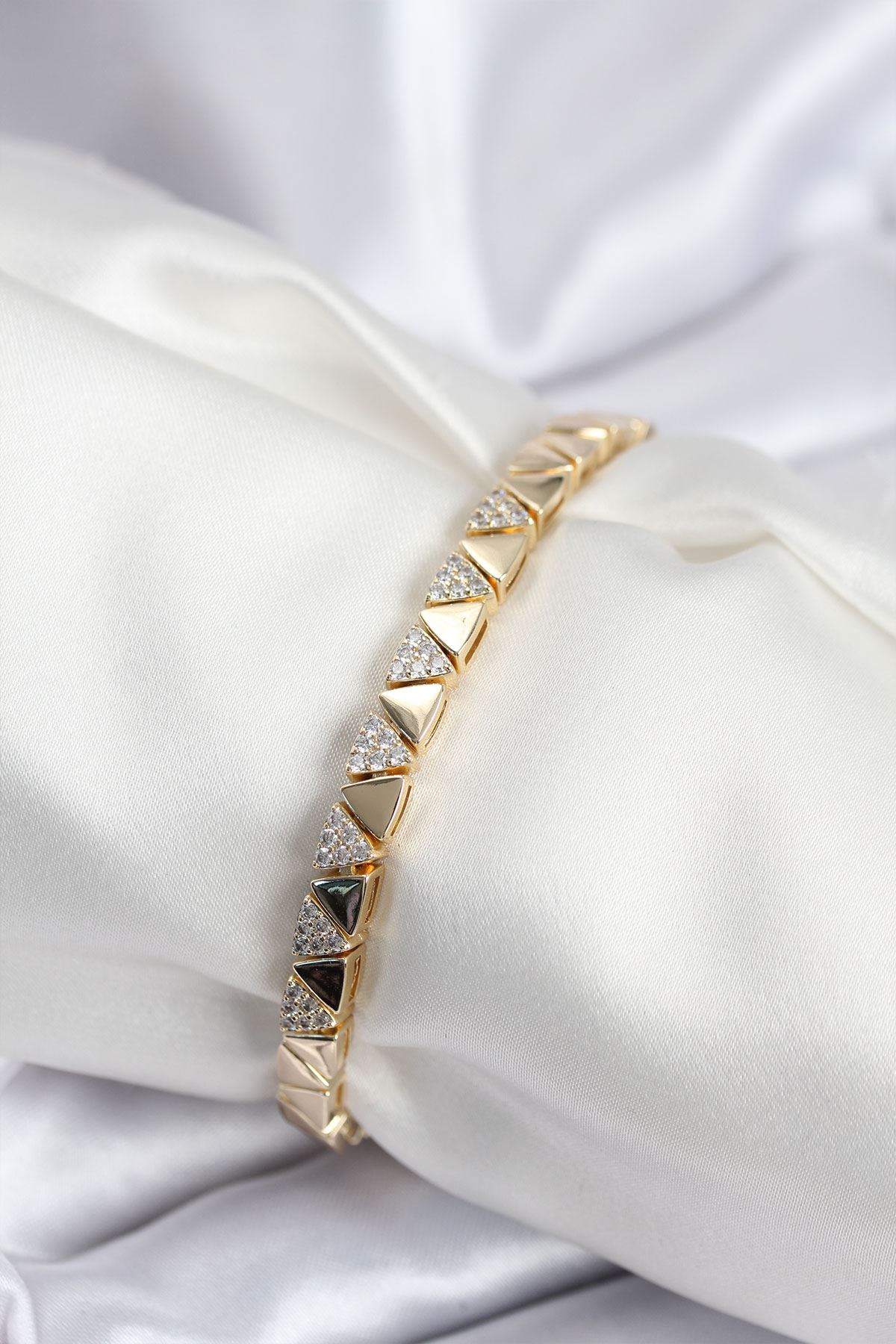 Pirinç VIP Seri Gold Renk Sıralı Üçgen Model Kadın Bileklik - TJ-BB7942