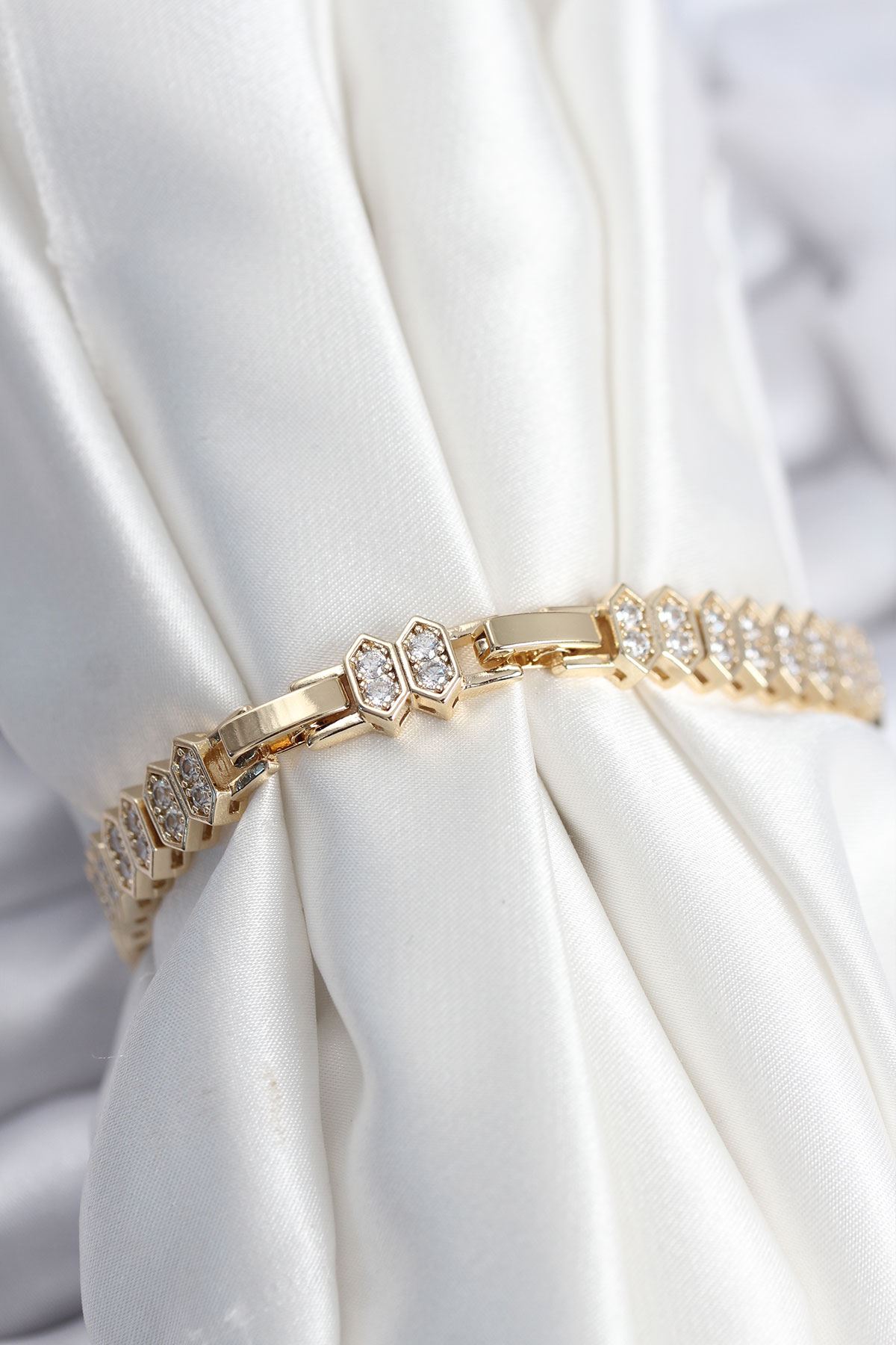 Pirinç VIP Seri Gold Renk Zirkon Taşlı Kadın Bileklik - TJ-BB7920