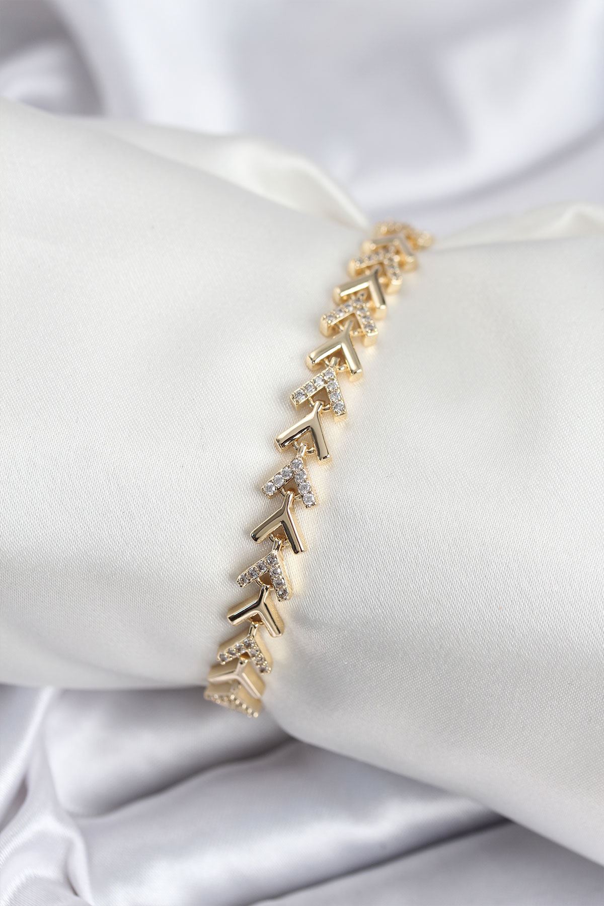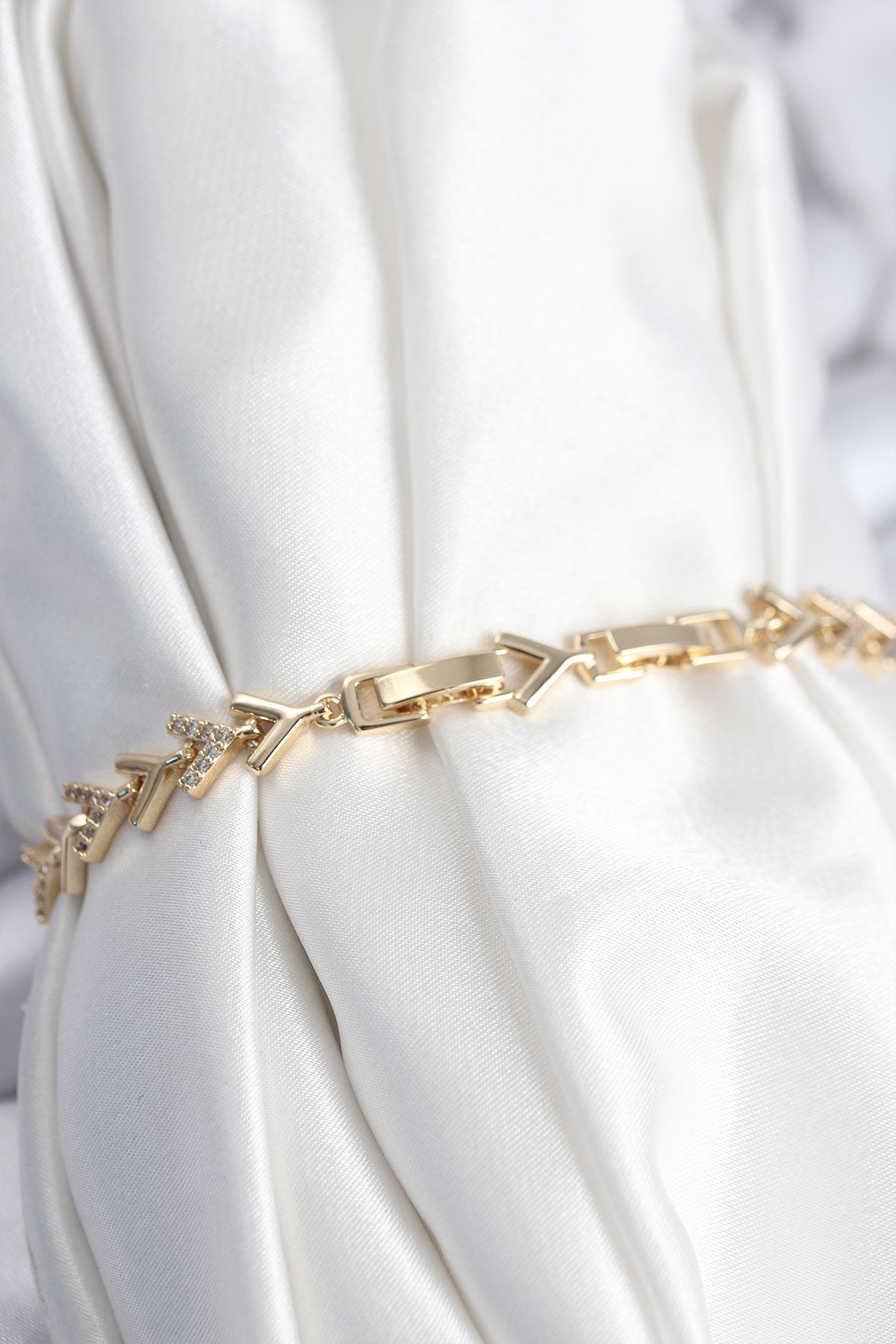 Pirinç VIP Seri Gold Zirkon Taşlı Balık Sırtı Model Kadın Bileklik - TJ-BB7921