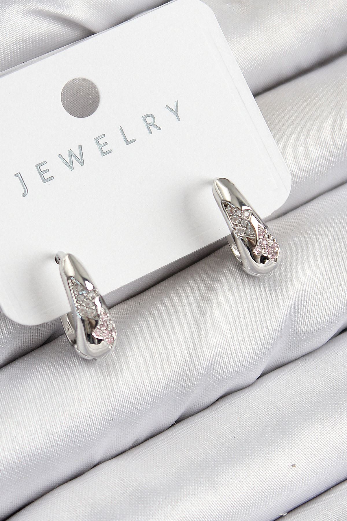 Pirinç Zirkon Taş Desenli Model Gümüş Renk Kadın Küpe - TJ-BKP11067