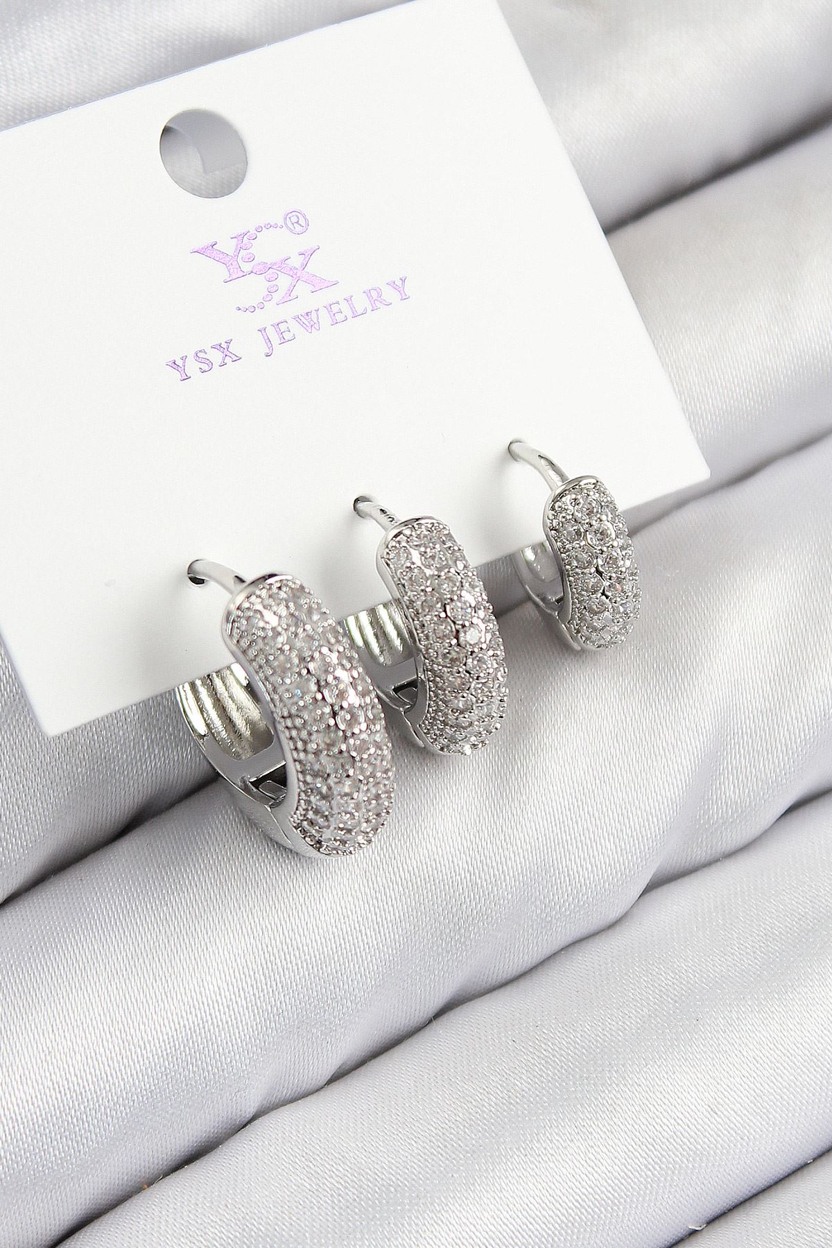 Pirinç Zirkon Taşlı 3'lü Halka Model Gümüş Renk Kadın Küpe - TJ-BKP11123