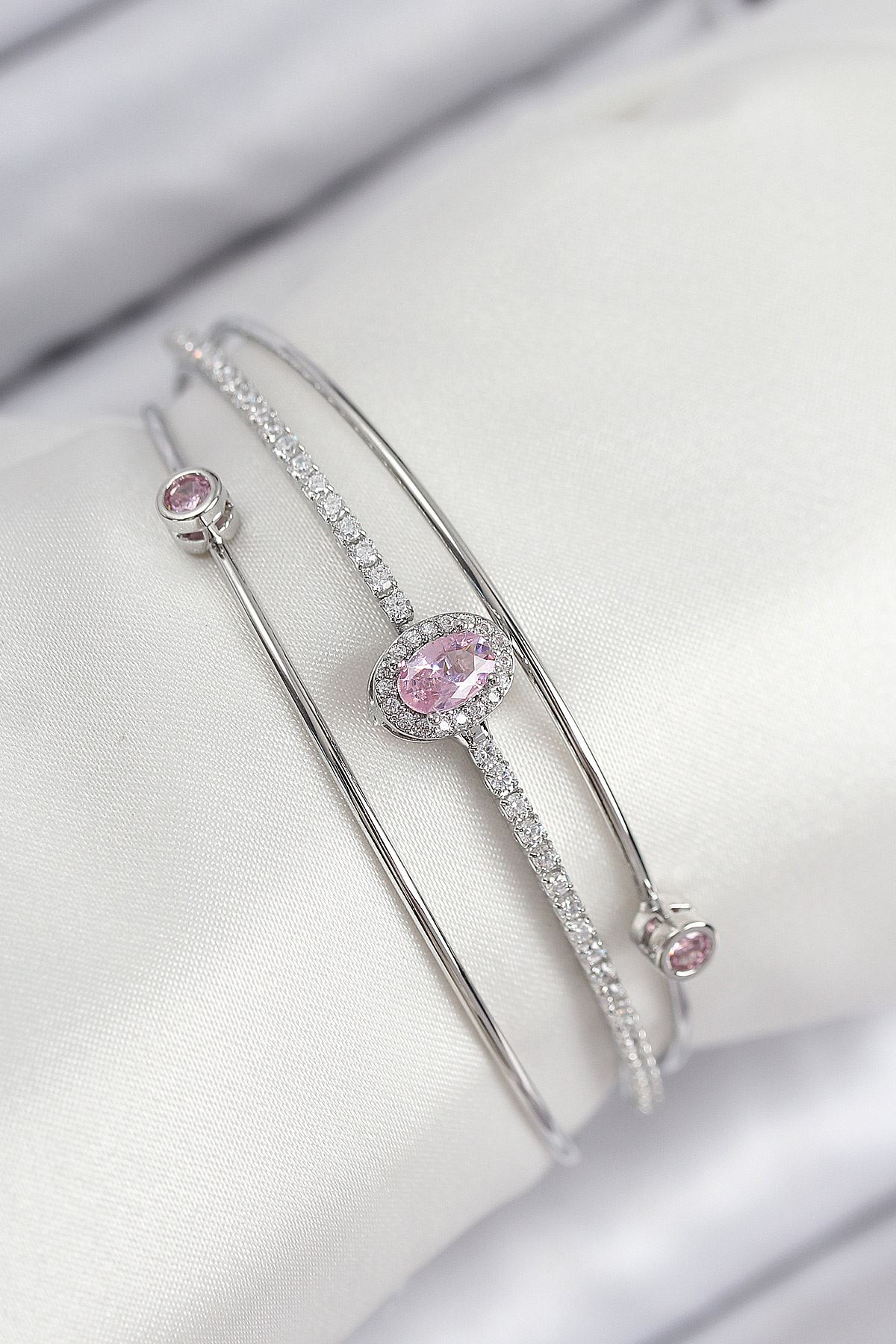 Pirinç Zirkon Taşlı Baget Model Gümüş Renk Kadın Bileklik - TJ-BB7864