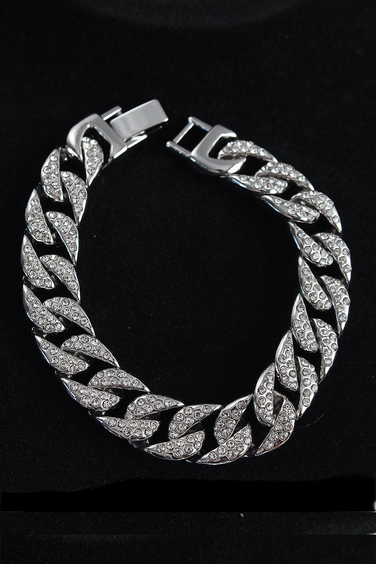 Pirinç Zirkon Taşlı Cuba Gurmet Model Gümüş Renk Erkek Bileklik - TJ-EB3751
