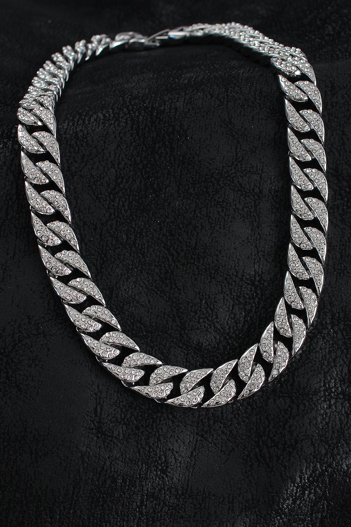 Pirinç Zirkon Taşlı Cuba Gurmet Model Gümüş Renk Erkek Kolye - TJ-ERK1404