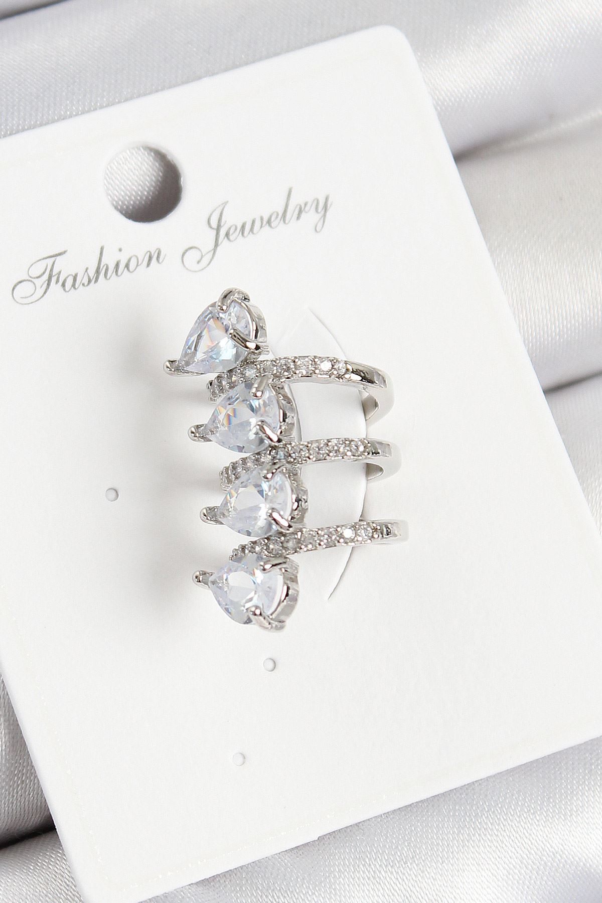 Pirinç Zirkon Taşlı Damla Model Gümüş Renk Sağ Kıkırdak Küpe - TJ-BKP10995