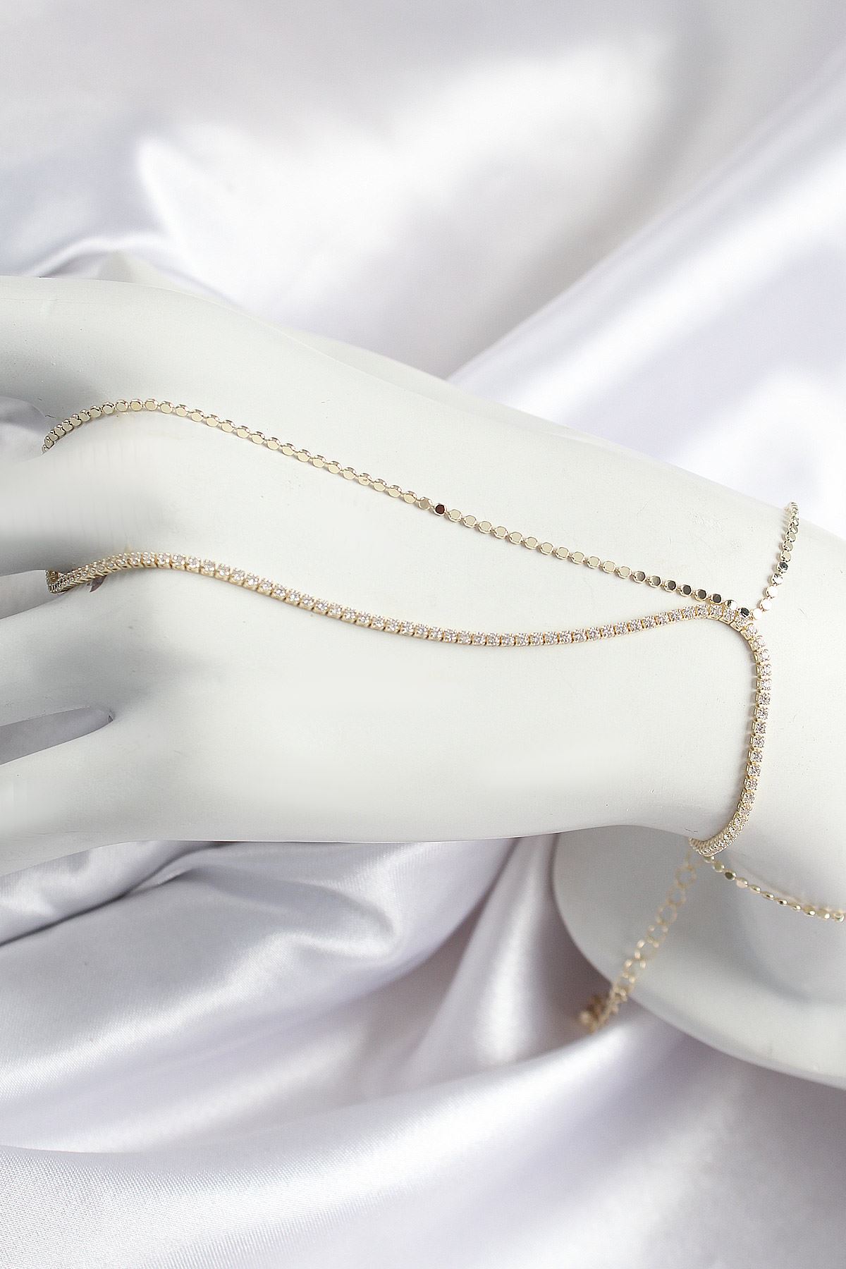 Pirinç Zirkon Taşlı Ezme Zincir Model Gold Renk Kadın Şahmeran - TJ-SN689