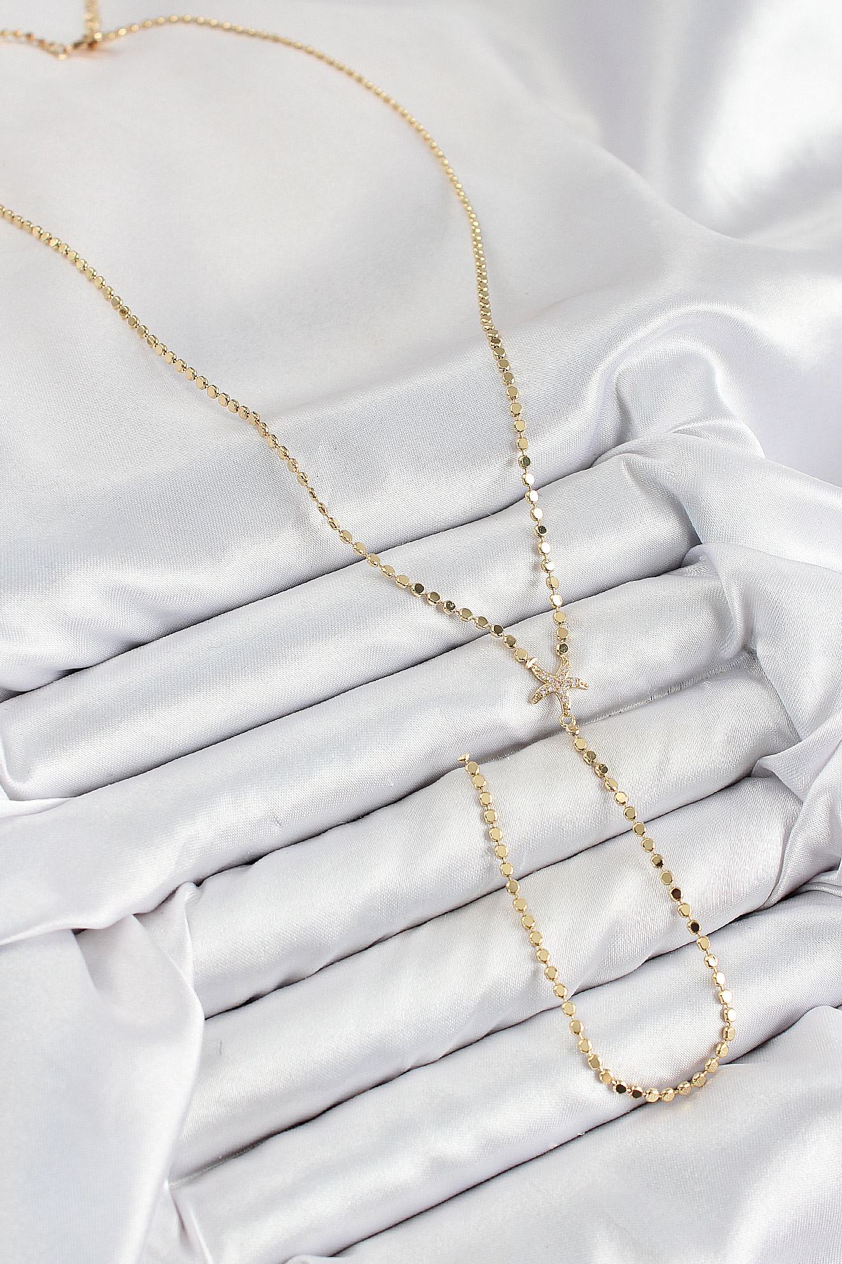 Pirinç Zirkon Taşlı Ezme Zincirli Deniz Yıldızı Model Gold Renk Y Kolye - TJ-BKO10467
