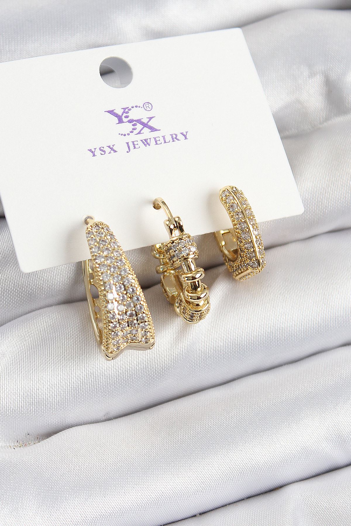 Pirinç Zİrkon Taşlı Halka Model Gold Renk 3'lü Kadın Küpe - TJ-BKP10946