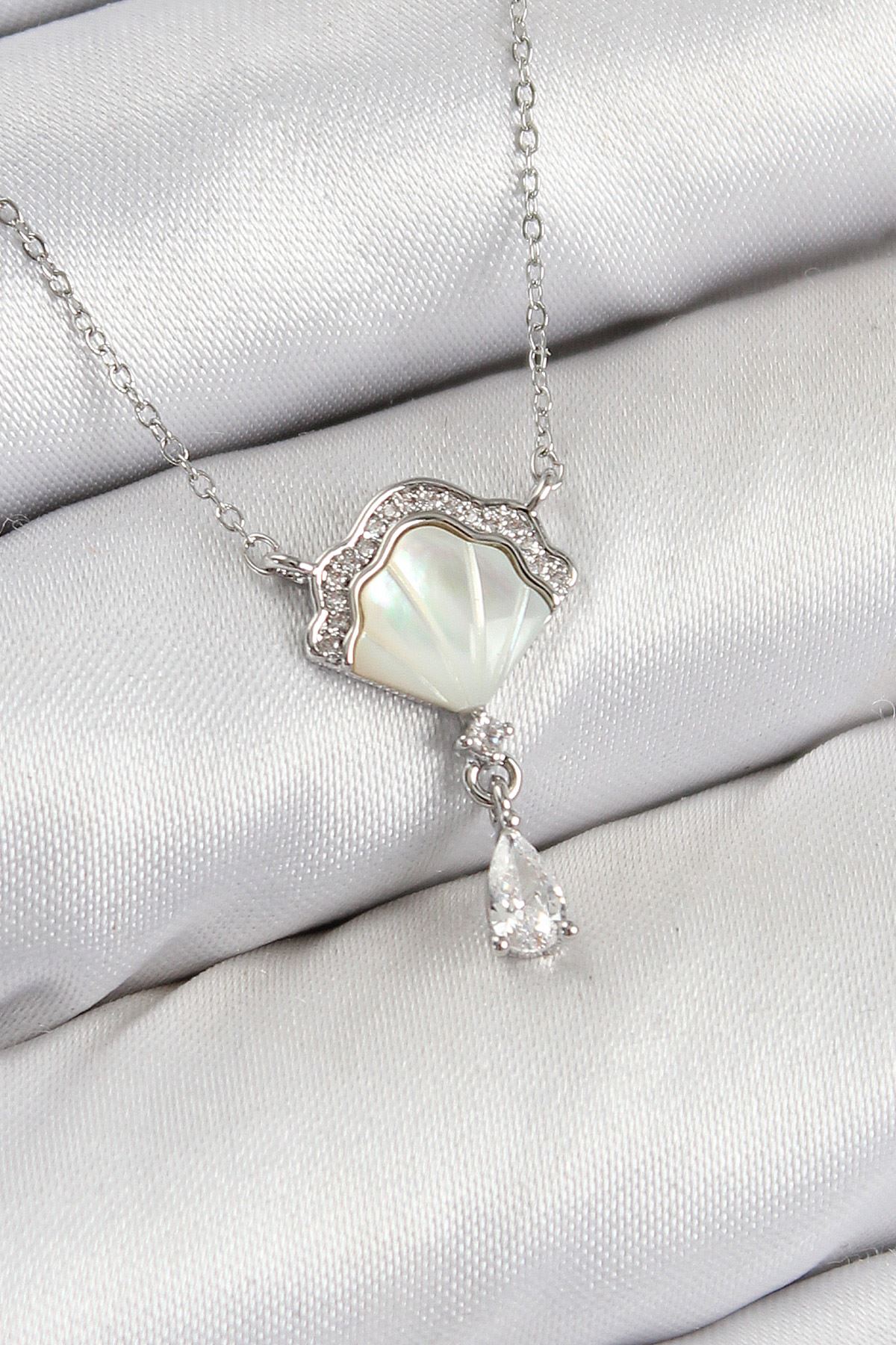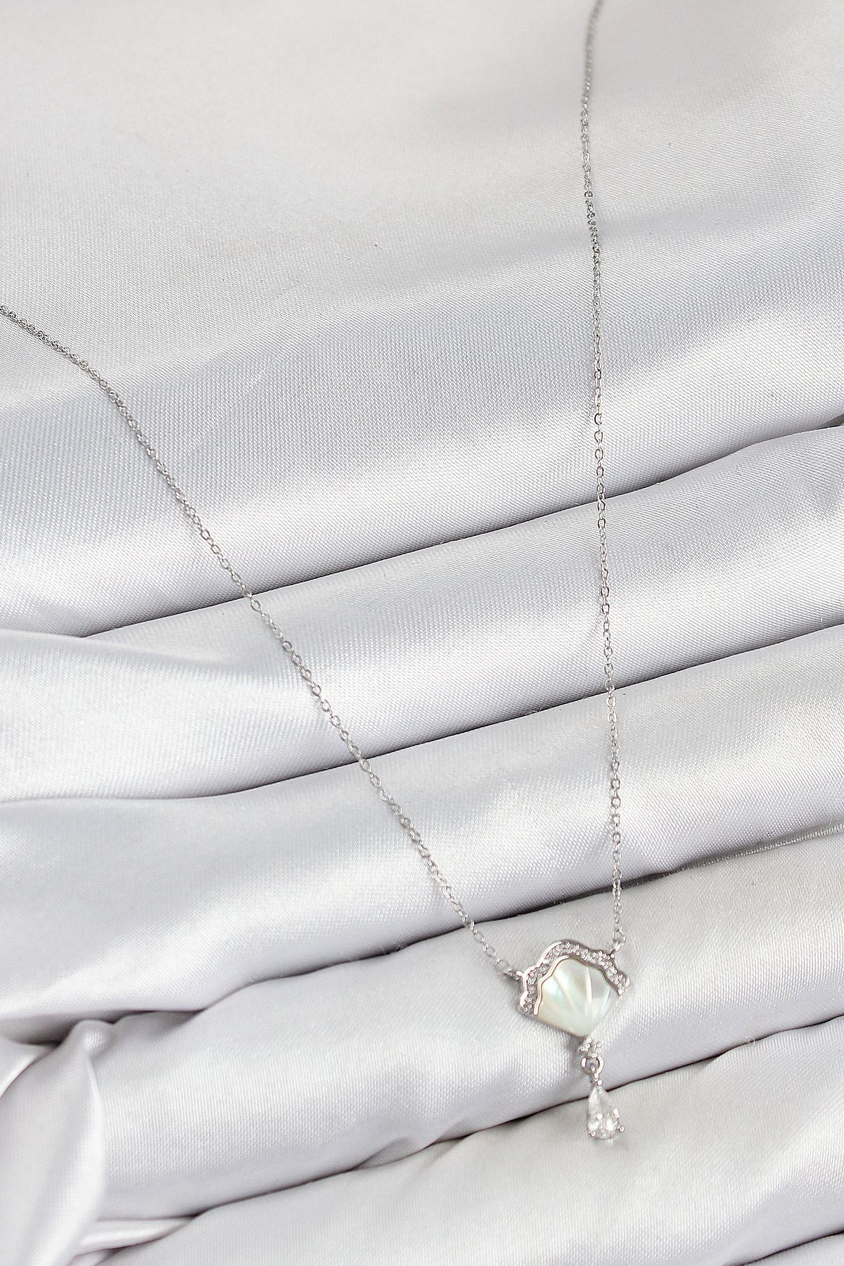 Pirinç Zirkon Taşlı İstiridye Model Gümüş Renk Kadın Kolye - TJ-BKO10417