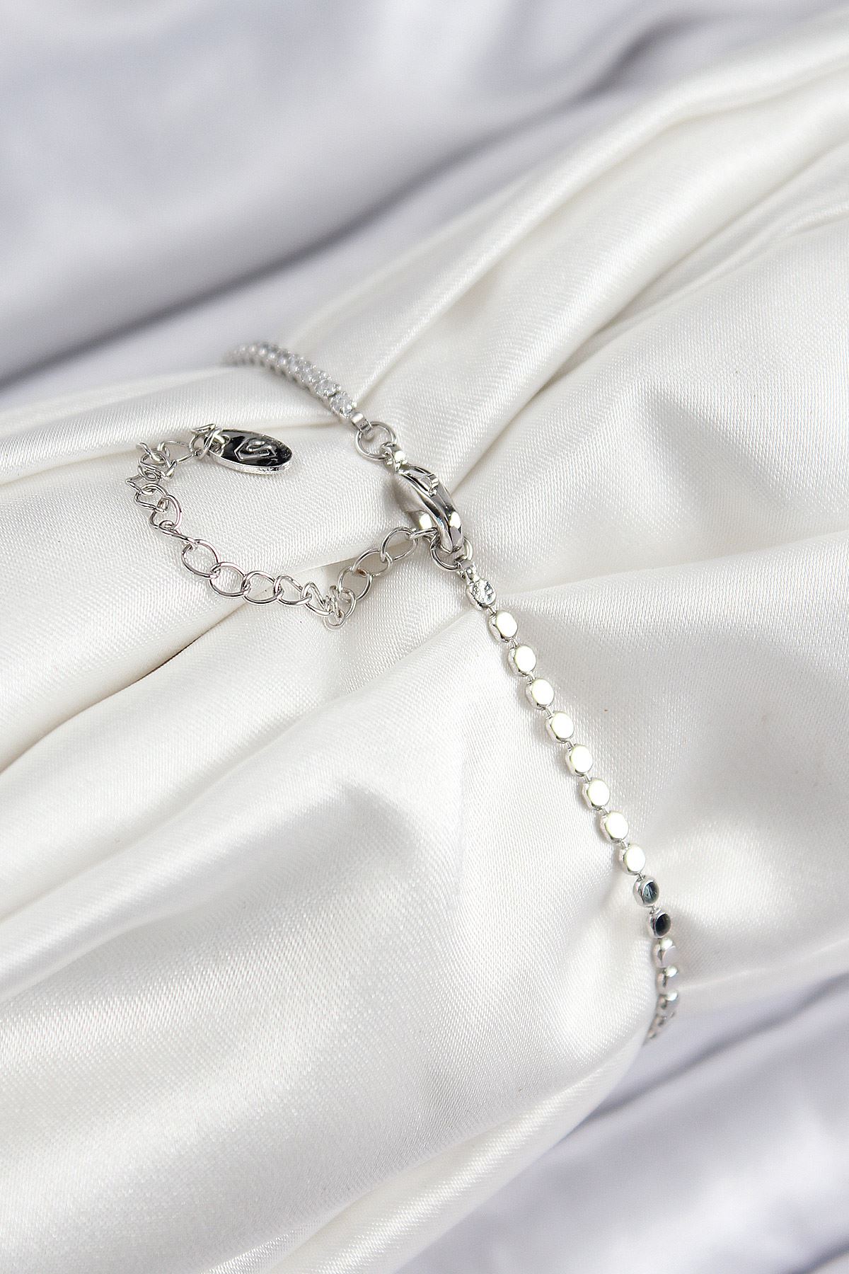 Pirinç Zirkon Taşlı Zincir Model Gümüş Renk Kadın Bileklik - TJ-BB7554