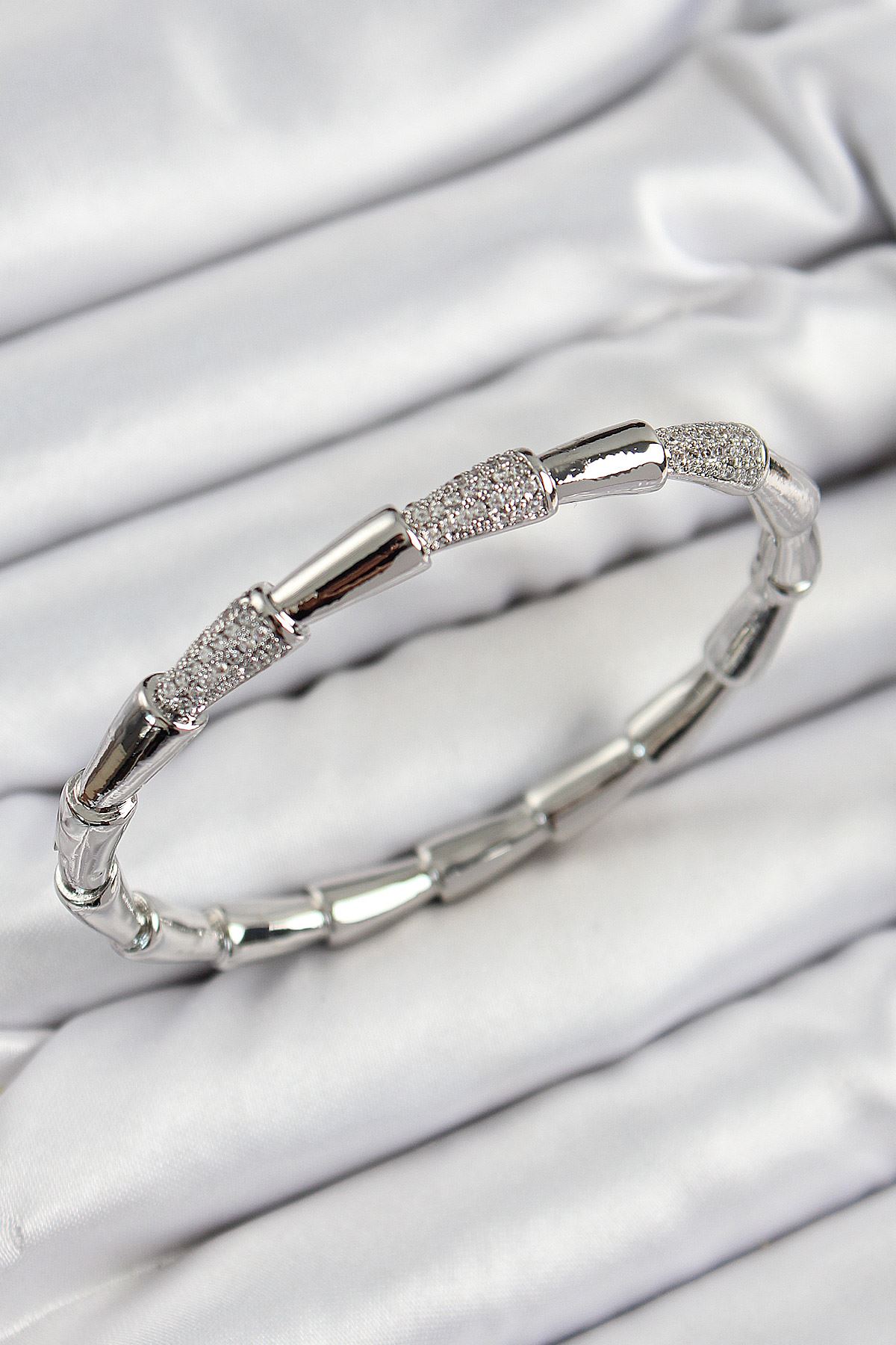Pirinç Zirkon Taşlı Kemik Model Gümüş Renk Vip Kadın Bileklik - TJ-BB7340