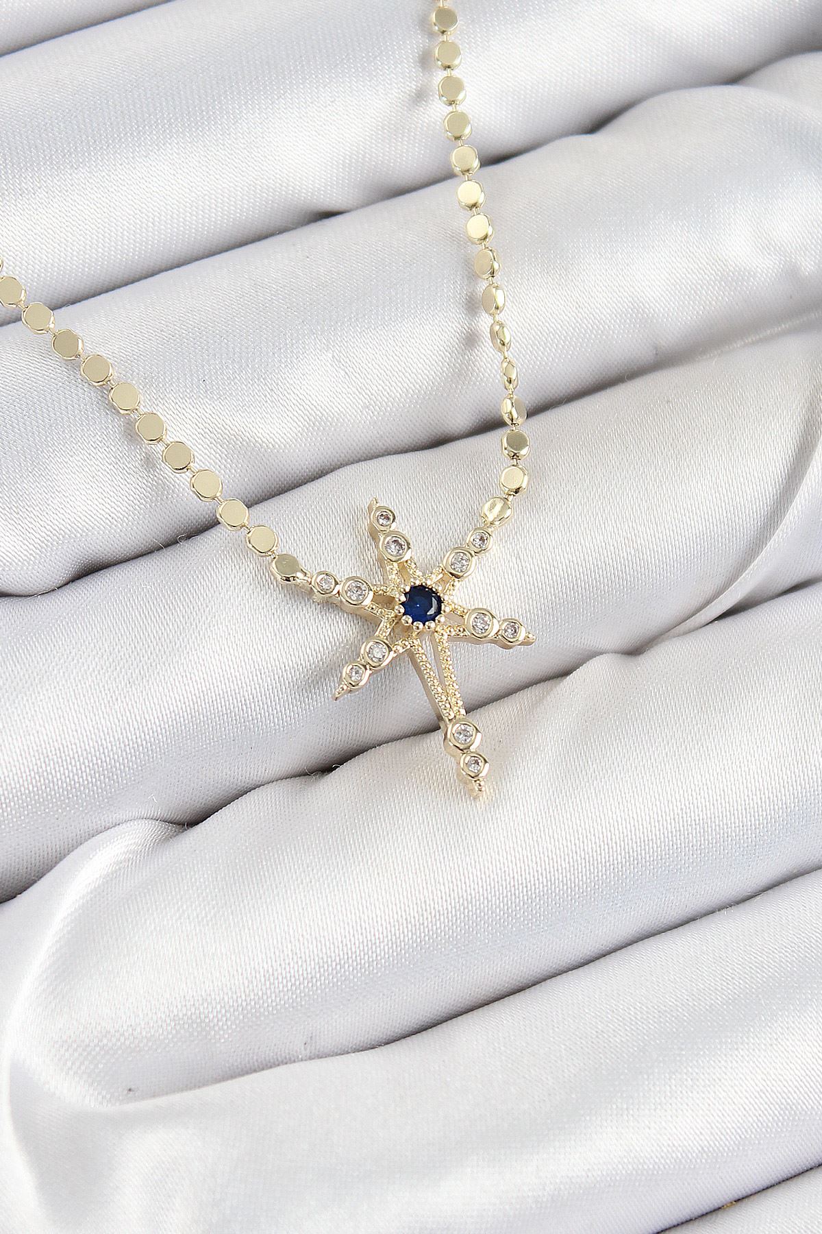Pirinç Zirkon Taşlı Kutup Yıldızı Model Ezme Zincir Gold Renk Kadın Kolye - TJ-BKO10388