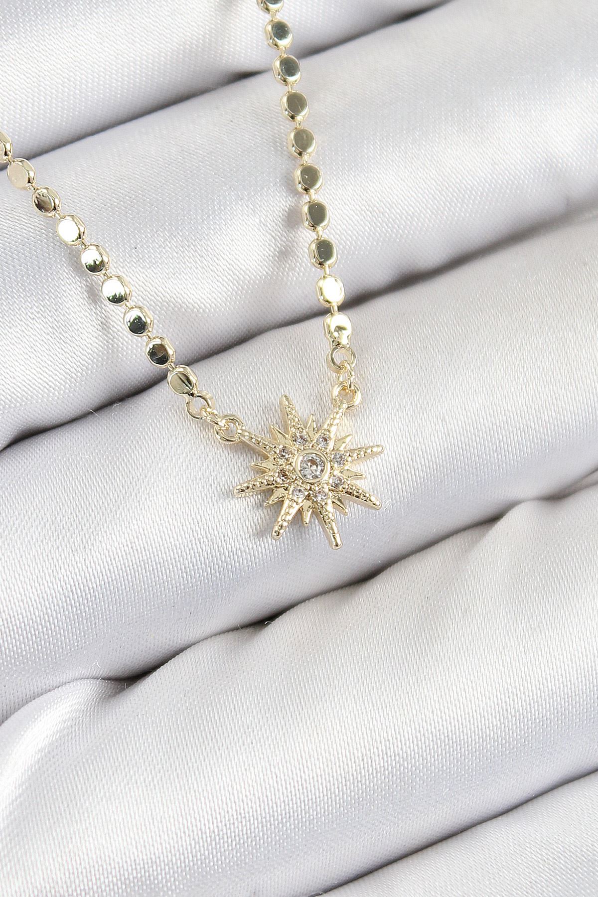 Pirinç Zirkon Taşlı Kutup Yıldızı Model Ezme Zincir Gold Renk Kadın Kolye - TJ-BKO10390